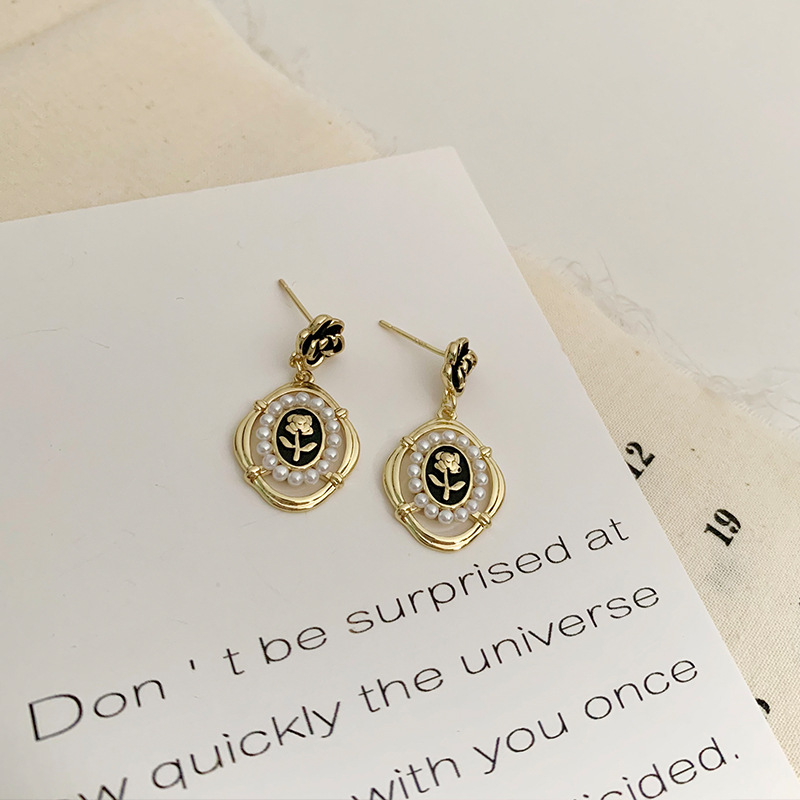 法式气质轻奢复古金色玫瑰花珍珠耳环耳钉小众高级感百搭耳环耳饰