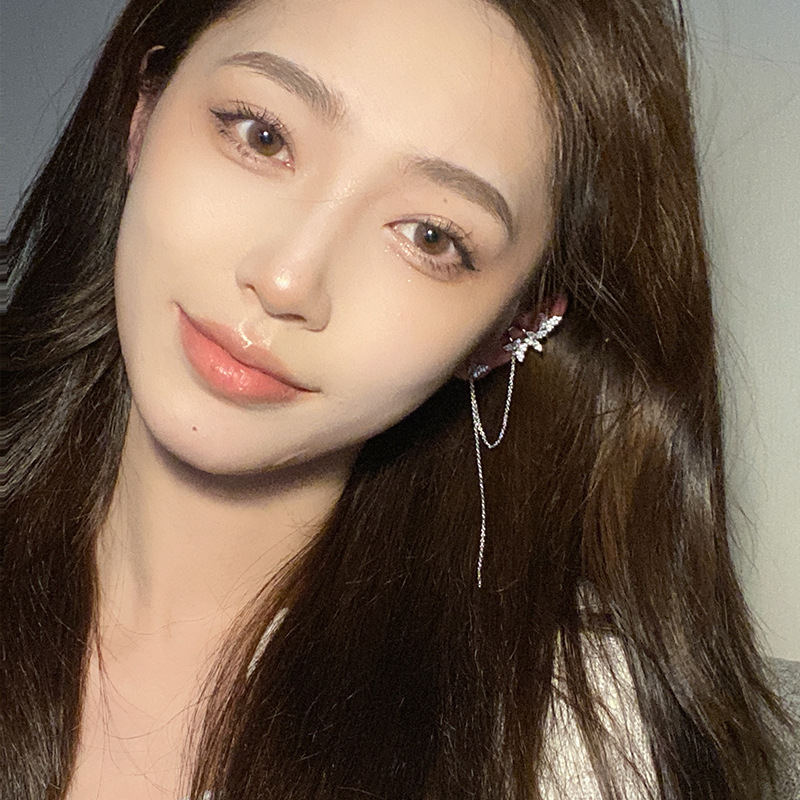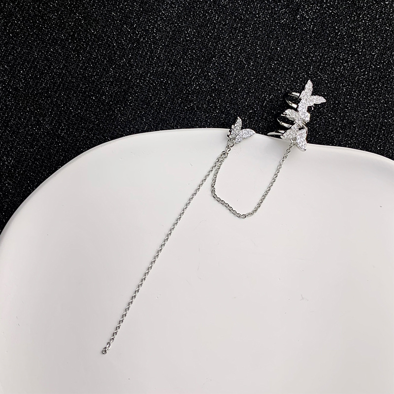锆石蝴蝶流苏耳钉耳骨夹一体式甜美耳环ins潮小众设计感长款耳饰