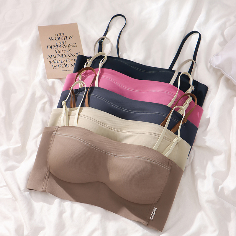 光面无痕抹胸内衣女无钢圈小胸聚拢文胸调整型简约薄杯透气收副乳