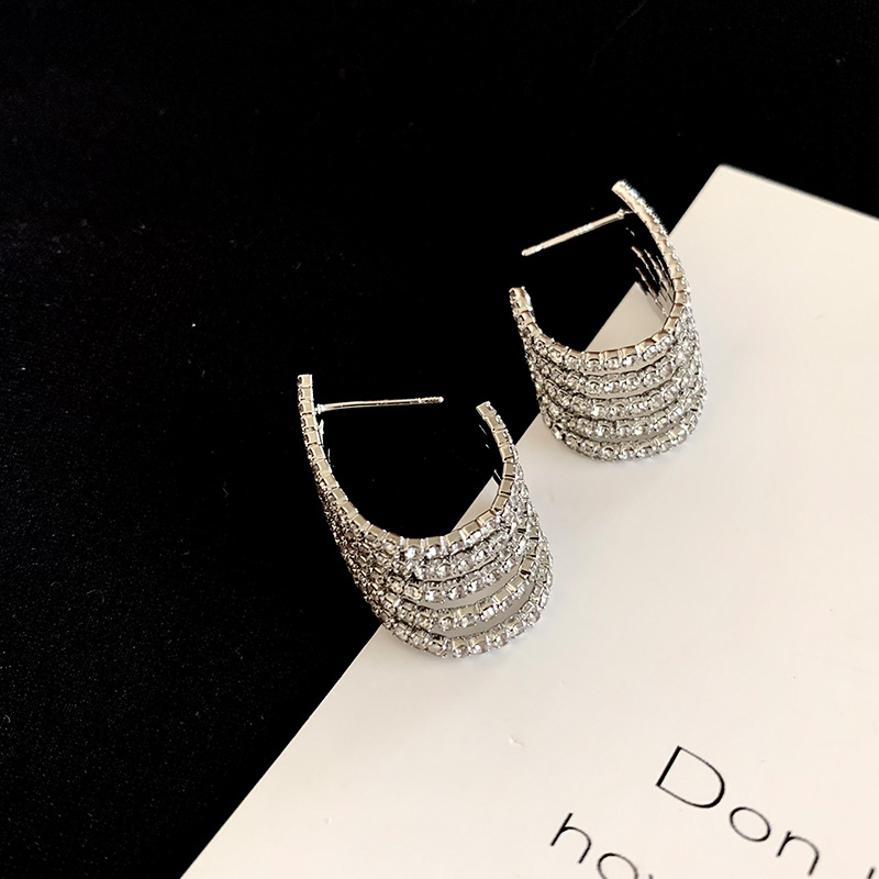 超闪奢华满钻多层c型耳坠气质百搭高级感耳钉ins小众设计轻奢耳环