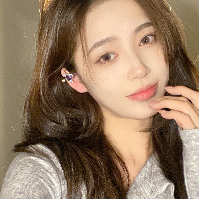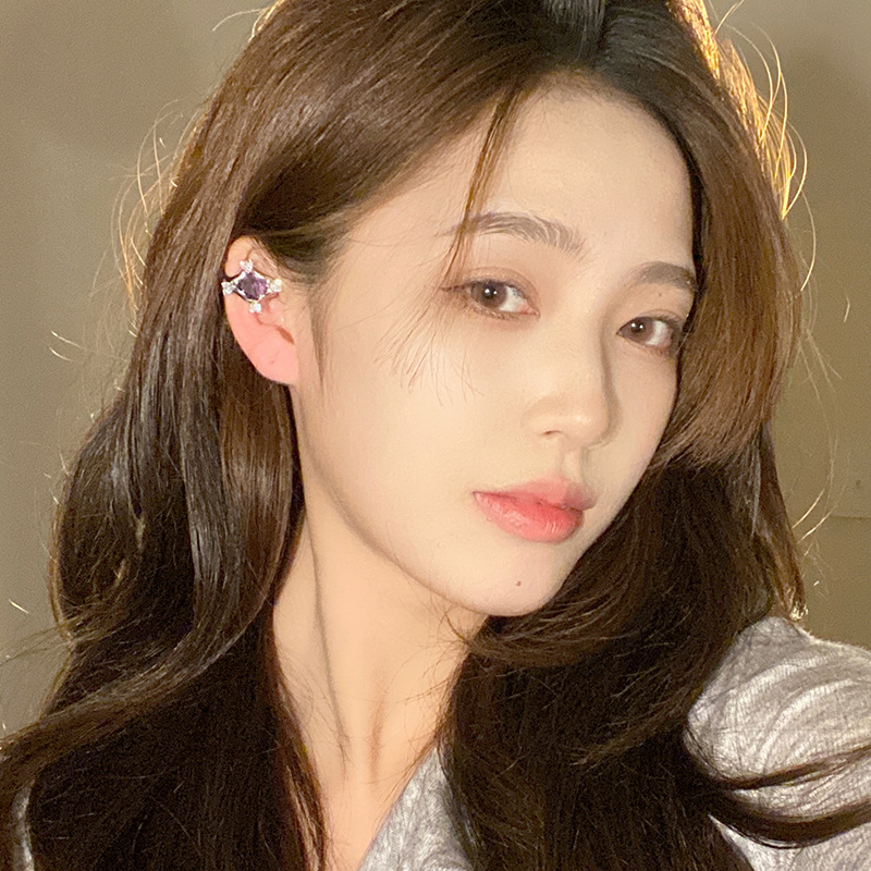 气质紫色钻锆石耳夹女无耳洞小众设计感耳环简约高级感耳骨夹耳饰