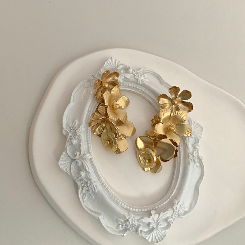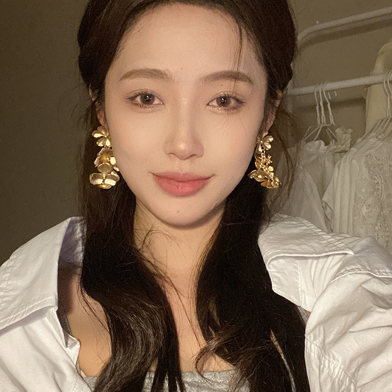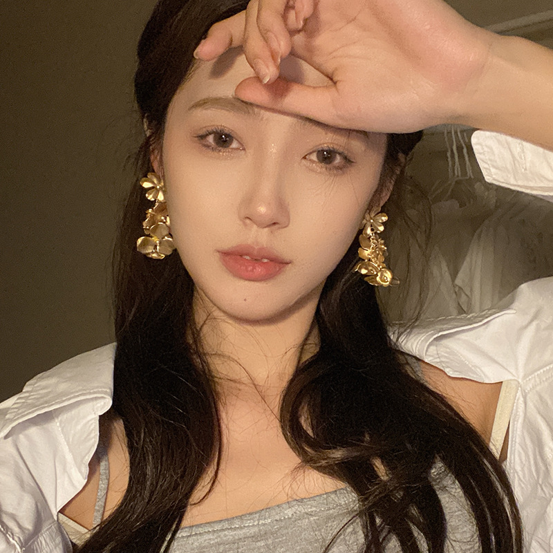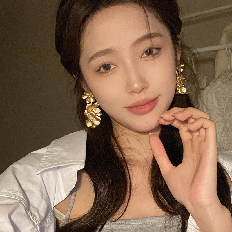 法式复古金属花朵耳环高级小众设计高级感耳坠气质夸张耳钉耳饰品