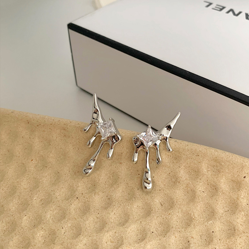 ins冷淡风水滴熔岩锆石耳环耳钉 小众设计感镶钻耳坠简约百搭耳饰