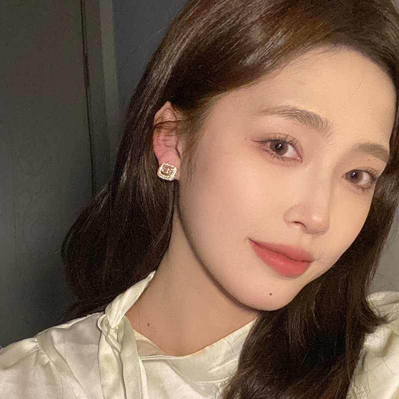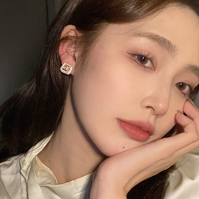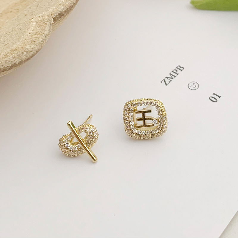 中国风文字耳环满钻国字耳钉个性设计感不对称耳饰百搭耳坠