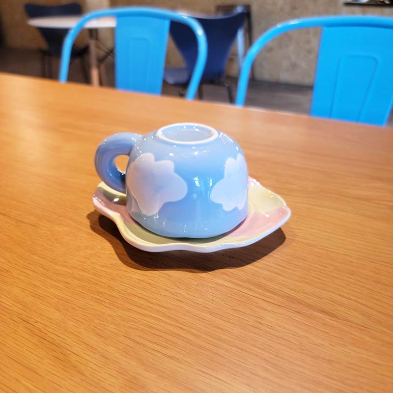 尺寸:杯口直径9CM,杯子高度6CM,碟子15x12.5CM,
