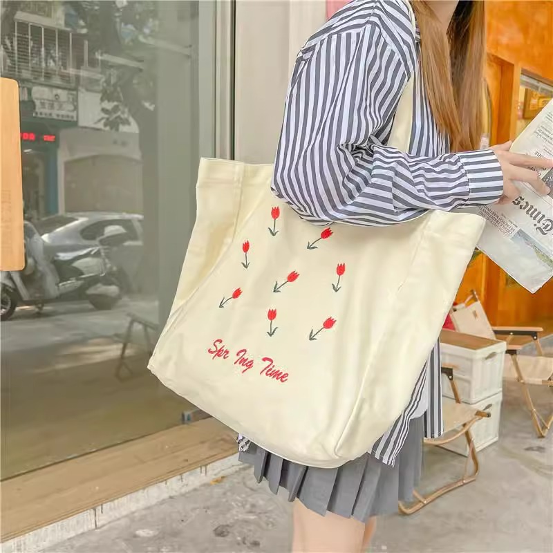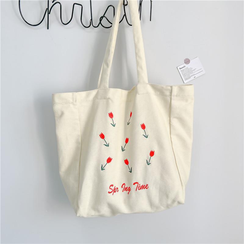 新款ins森系帆布包韩版小清新单肩包简约风铃花大学生手提包