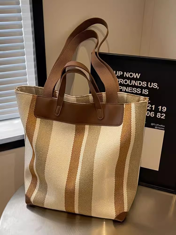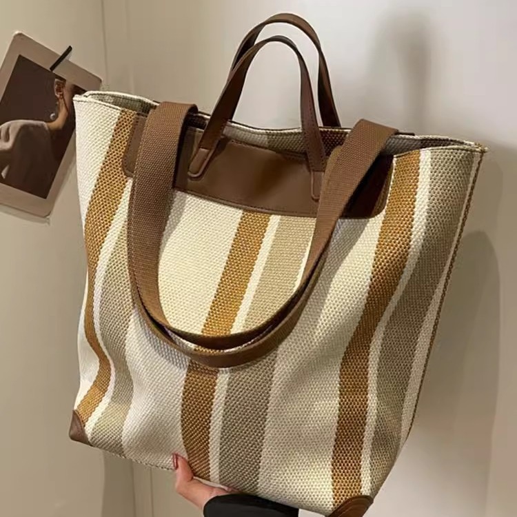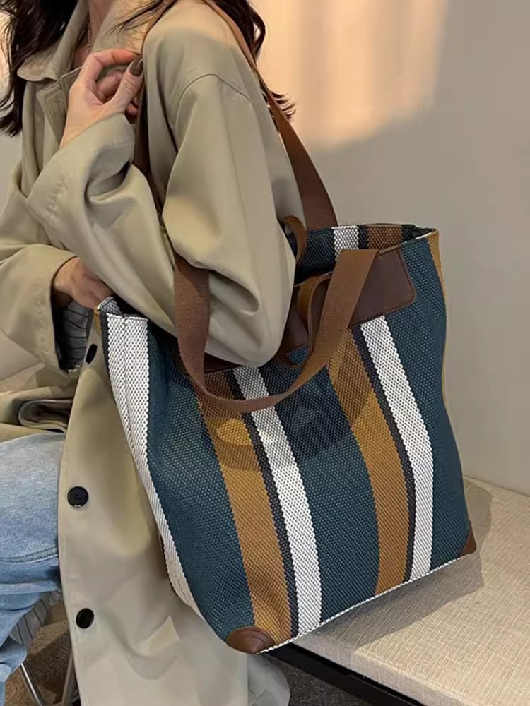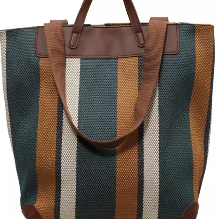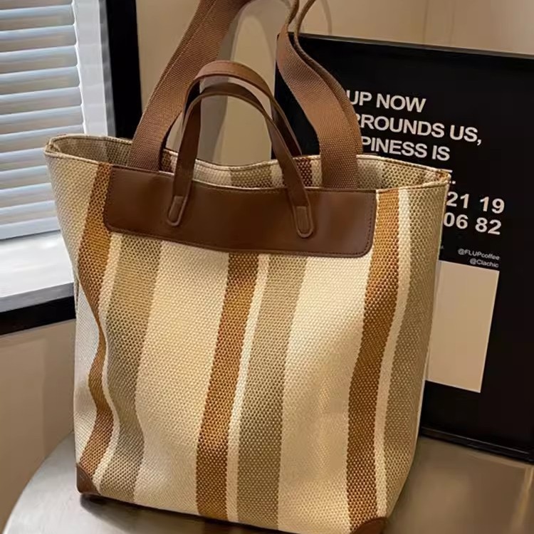 托特包大容量女学生通勤帆布单肩包高级感百搭撞色女士休闲手提袋