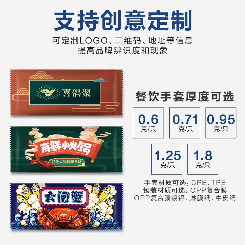 一次性手套独立小包装加厚塑料透明餐饮食品吃龙虾披萨外卖pe手套