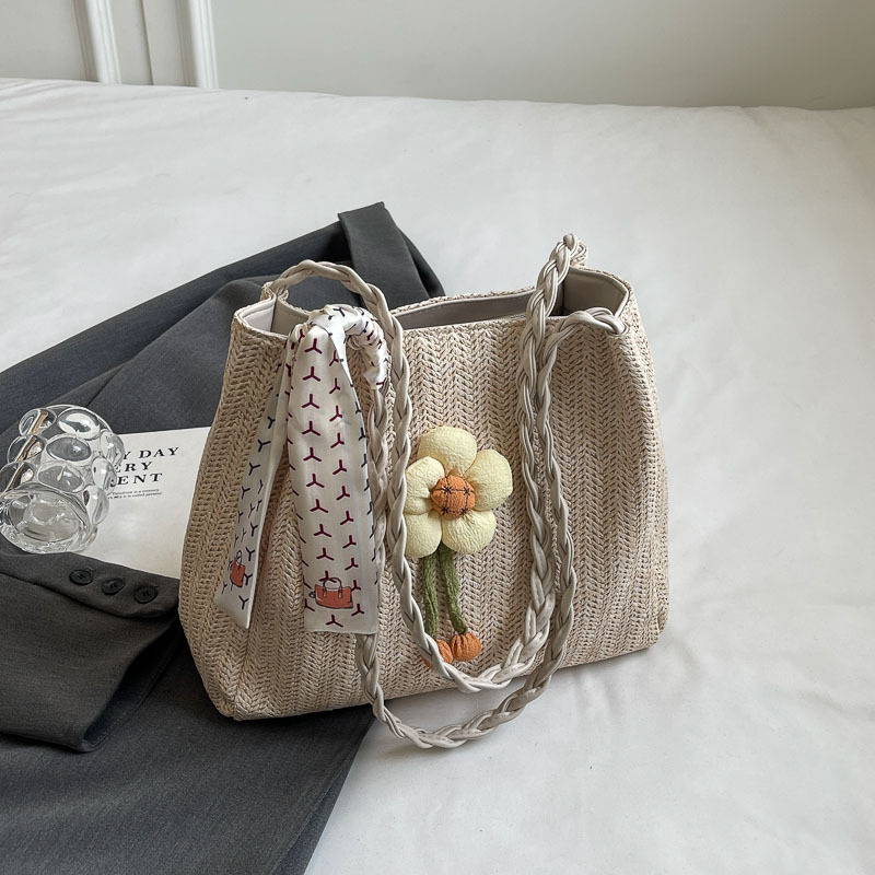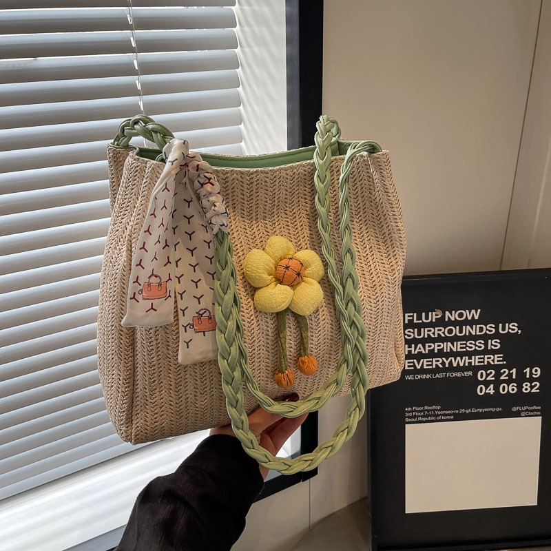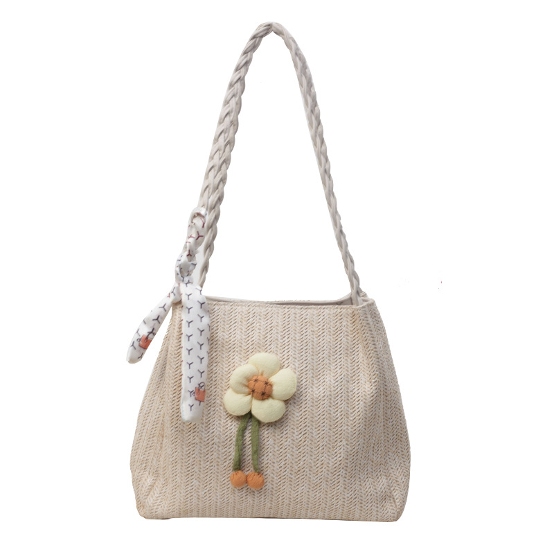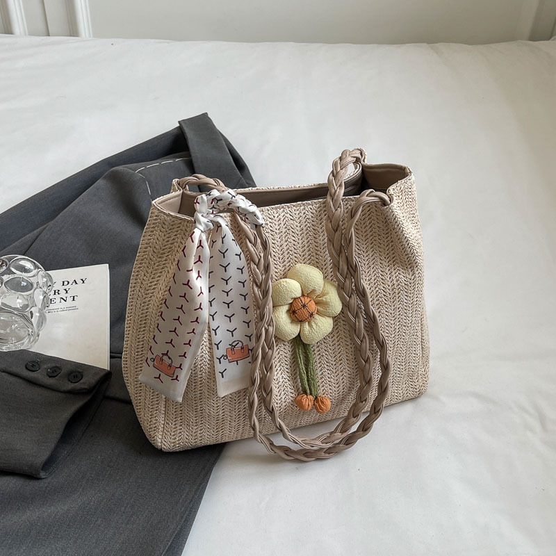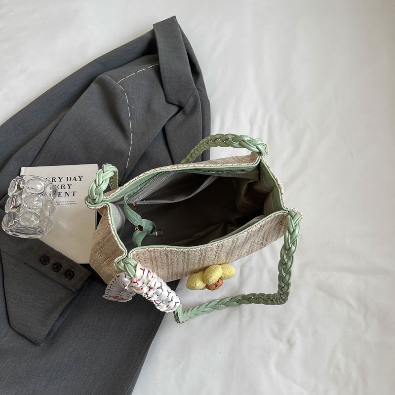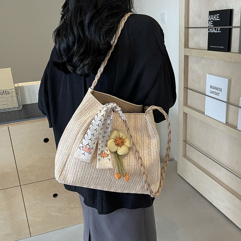 单肩包女生高级感小众文艺草编包百搭大容量学生简约春夏季手提包