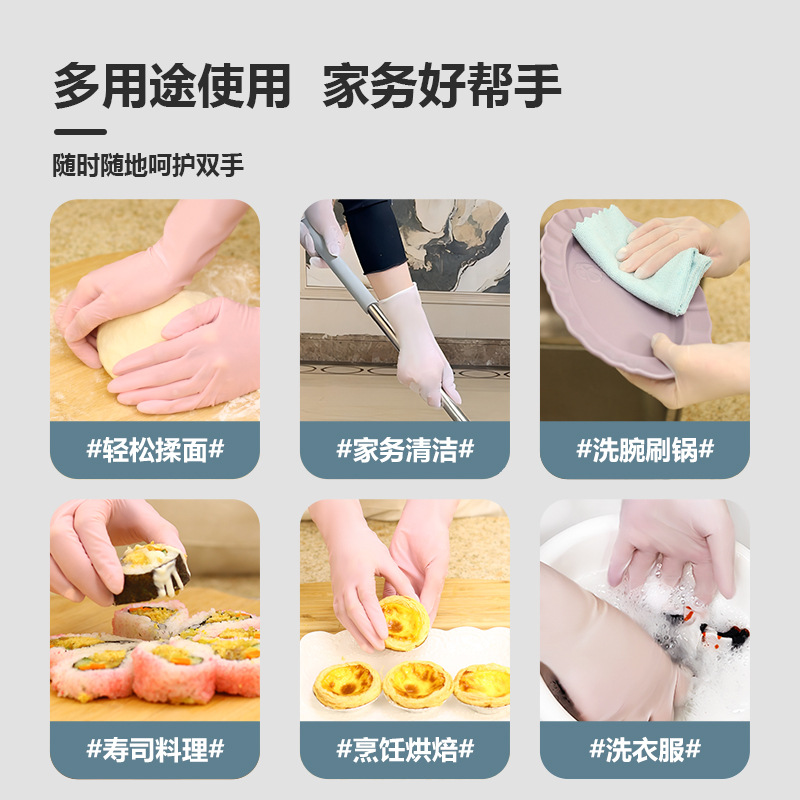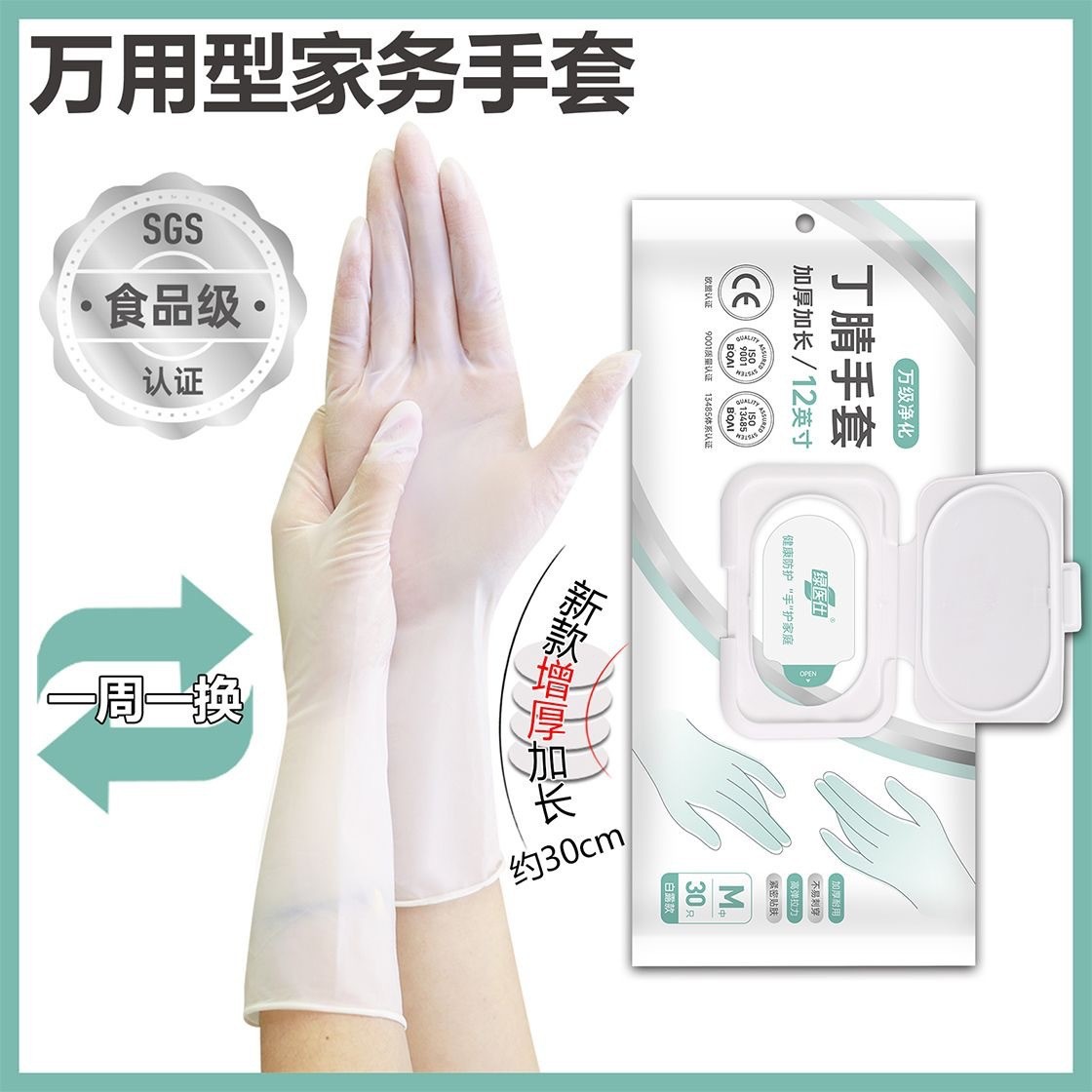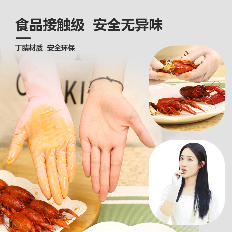 绿医仕食品级丁腈不易破家务厨房洗碗橡胶一次性加长防水高弹手套