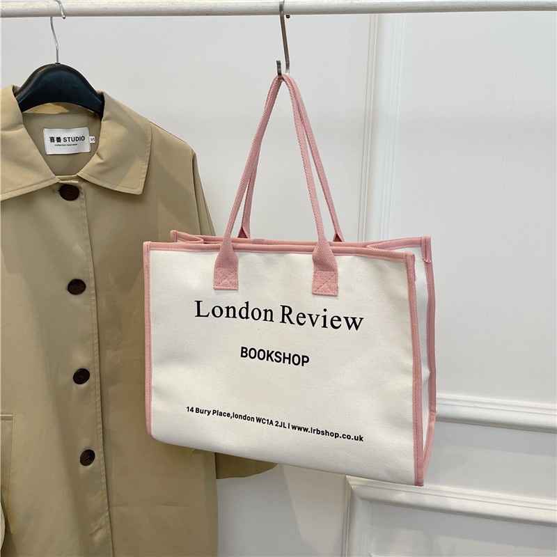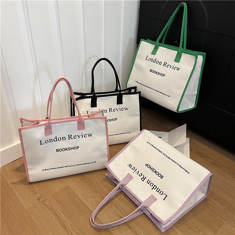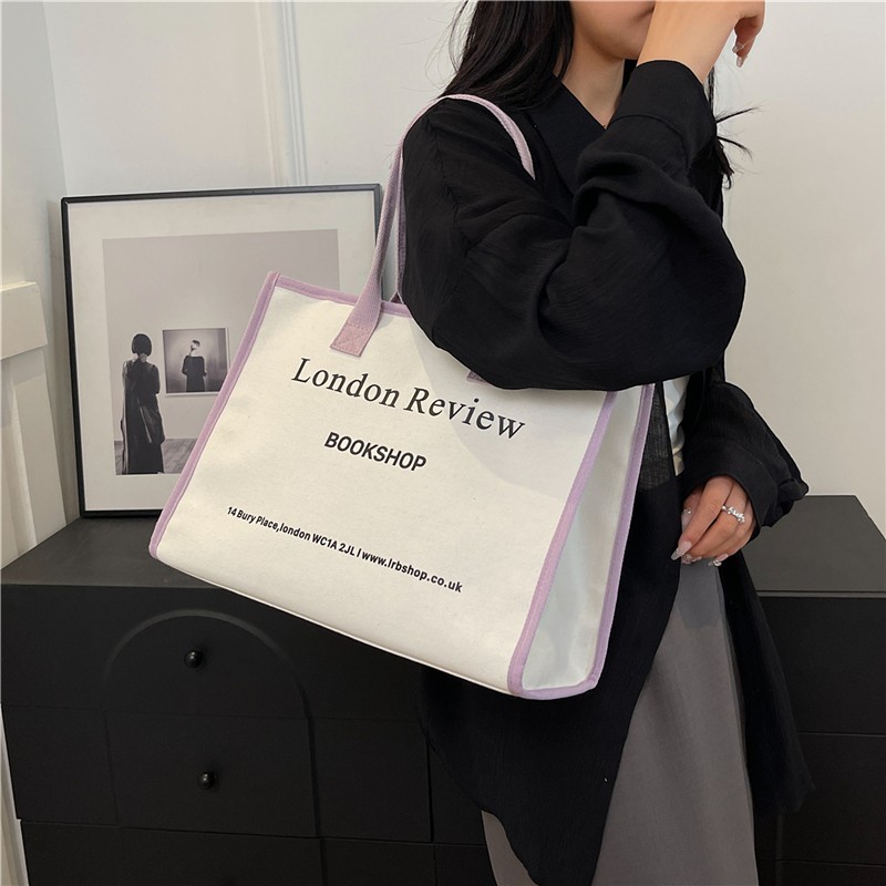 单肩包帆布文艺大容量简约手提包女夏季新款百搭学生手拎补课袋