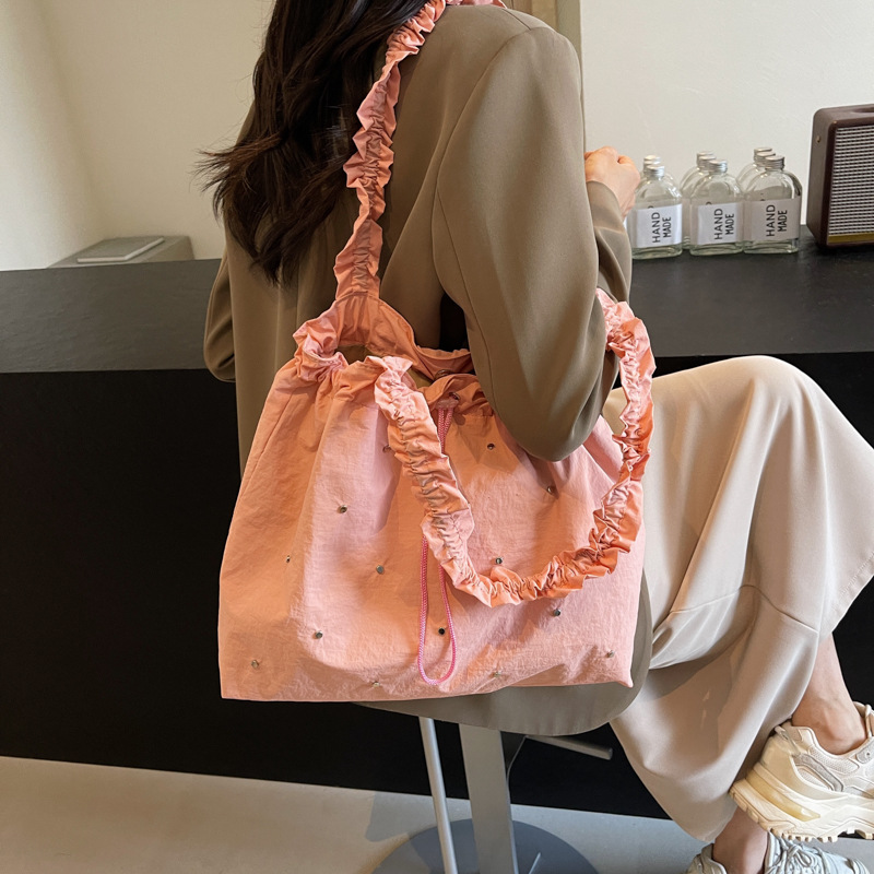 韩风ins新款泡泡单肩包两面背时尚少女帆布包休闲大容量托特包包