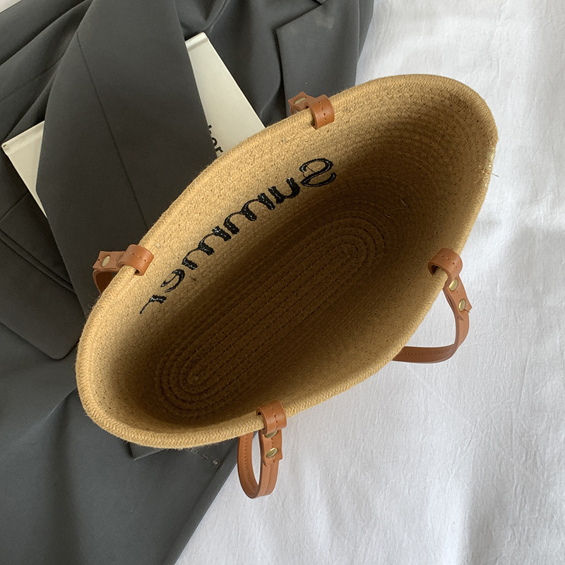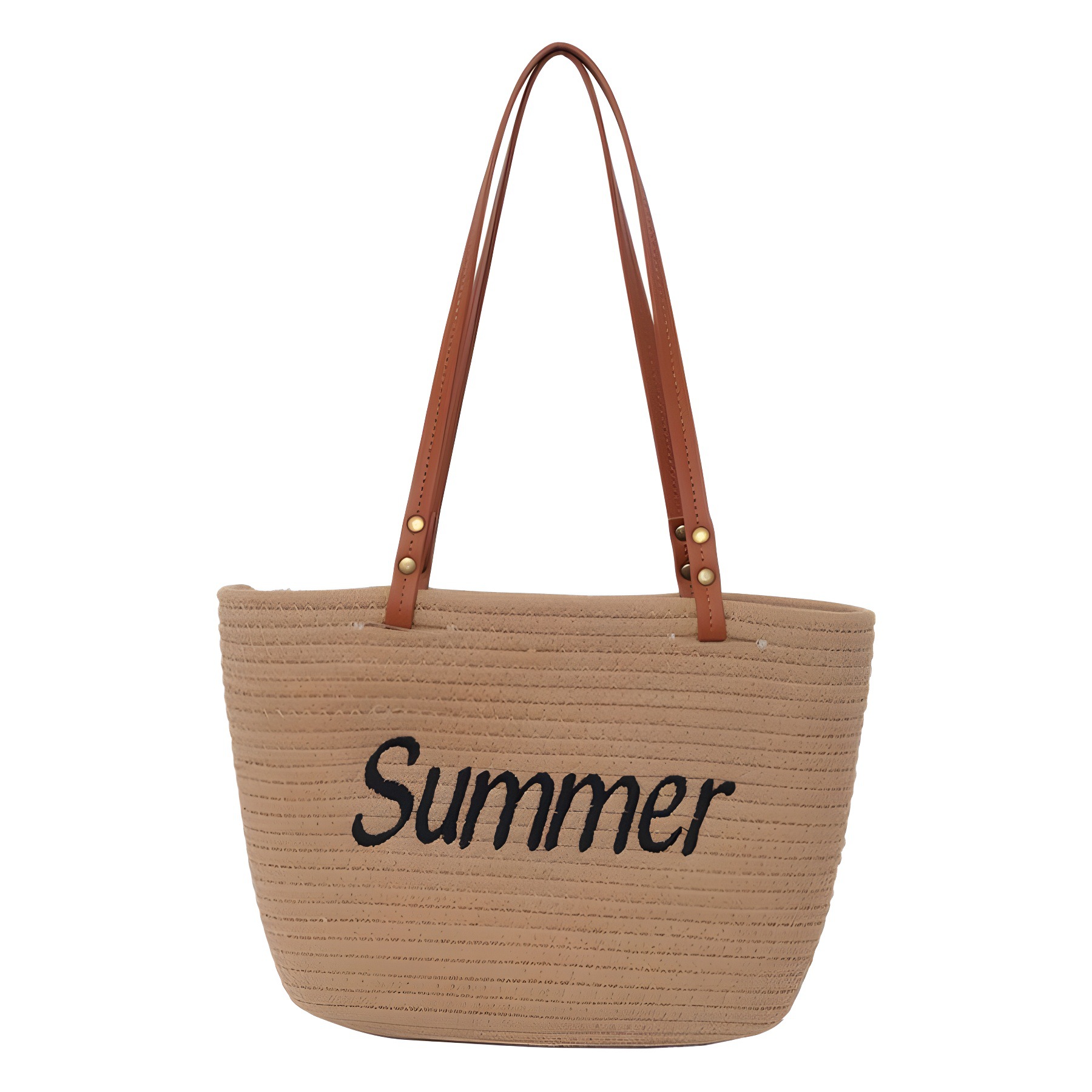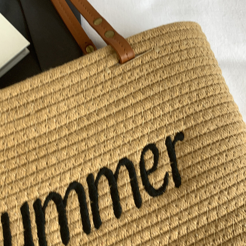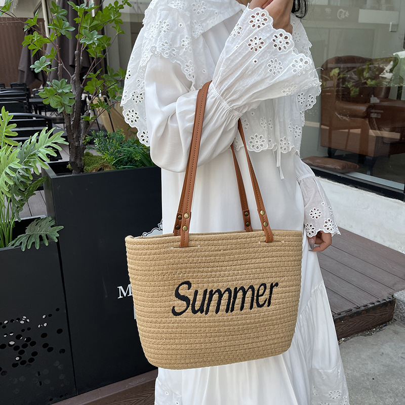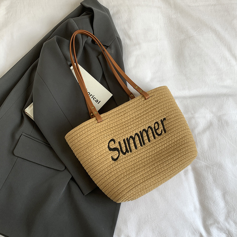 单肩包女高级感大容量夏季手提草编包女士百搭通勤学生简约托特包