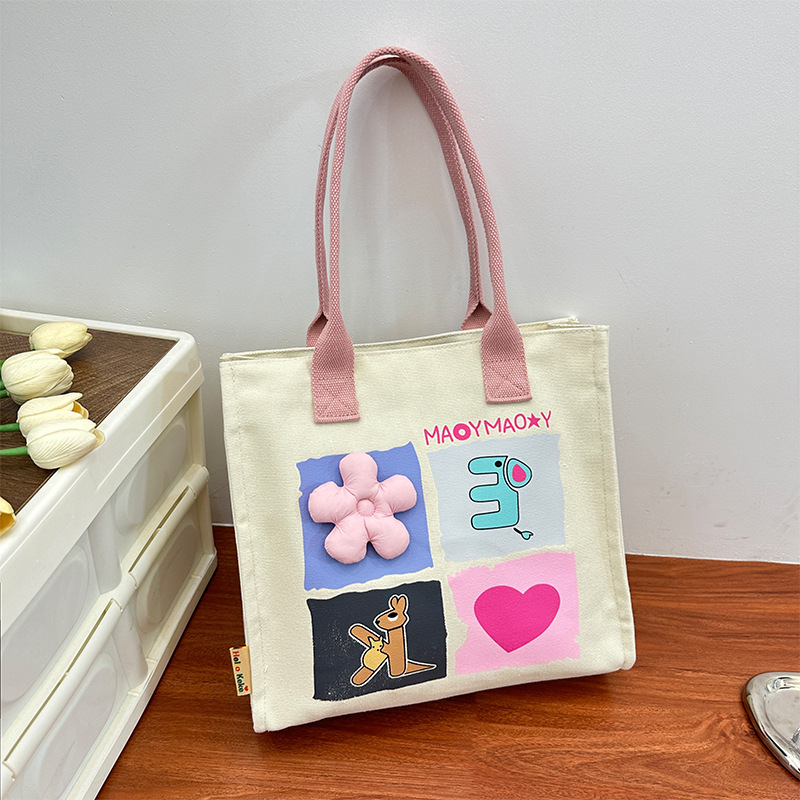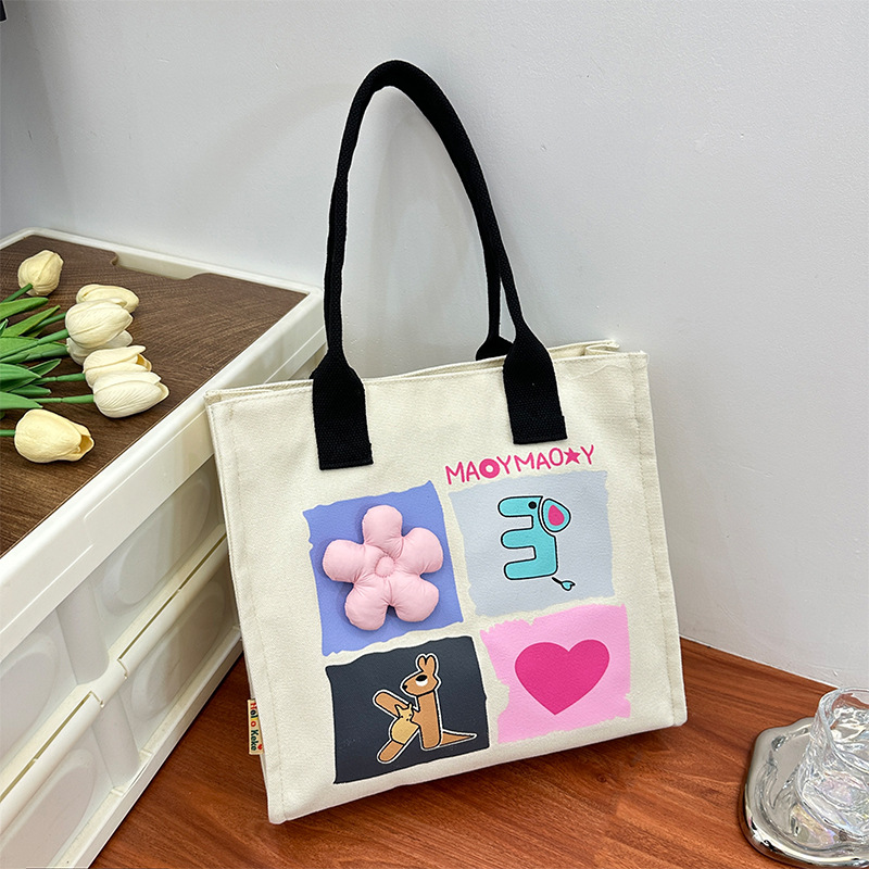 印花布包女托特包帆布袋上班大容量通勤学生装书单肩布袋包