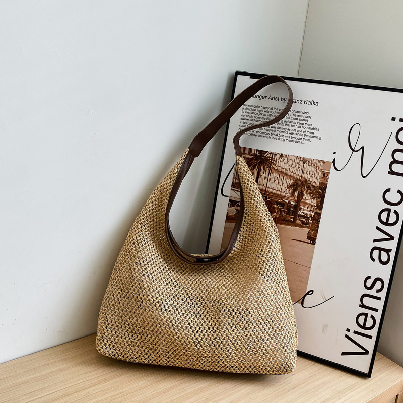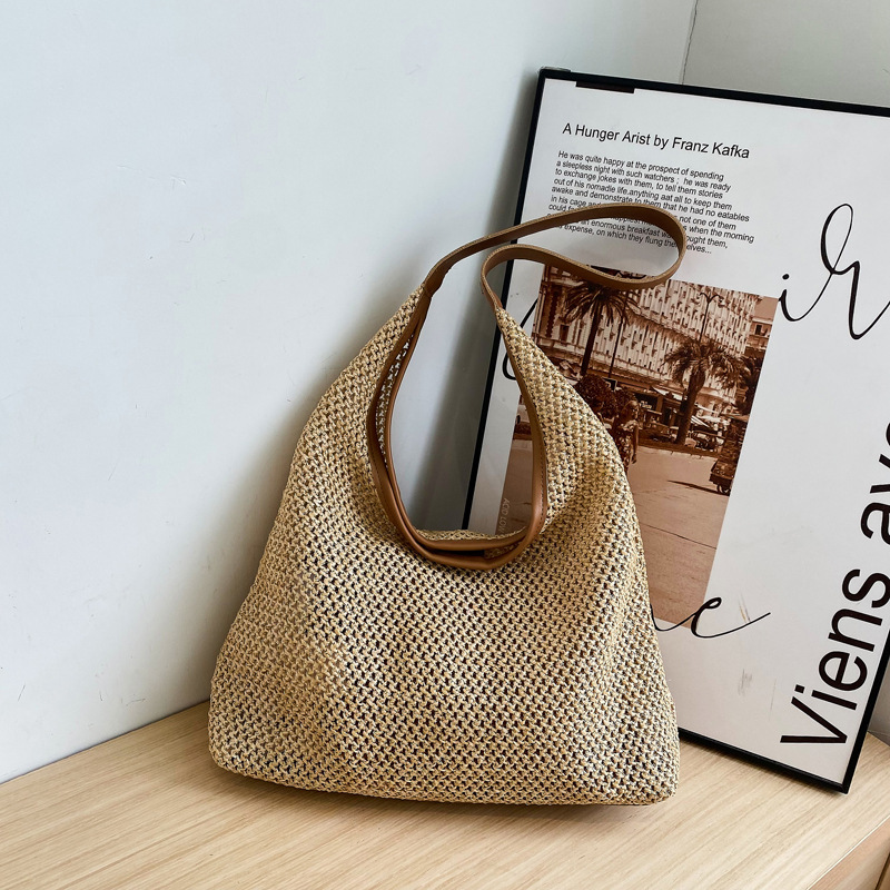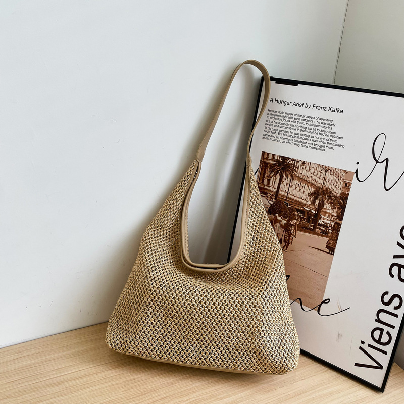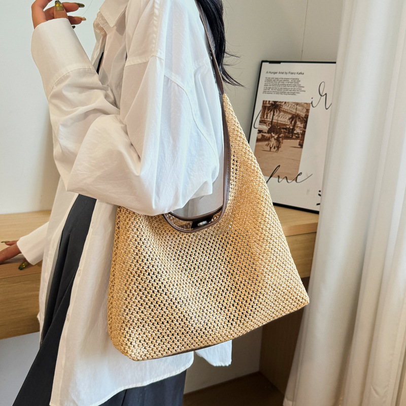 女包包高级感小众夏季新款草编包百搭大容量单肩手拎藤编包