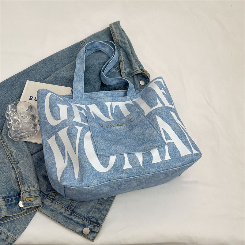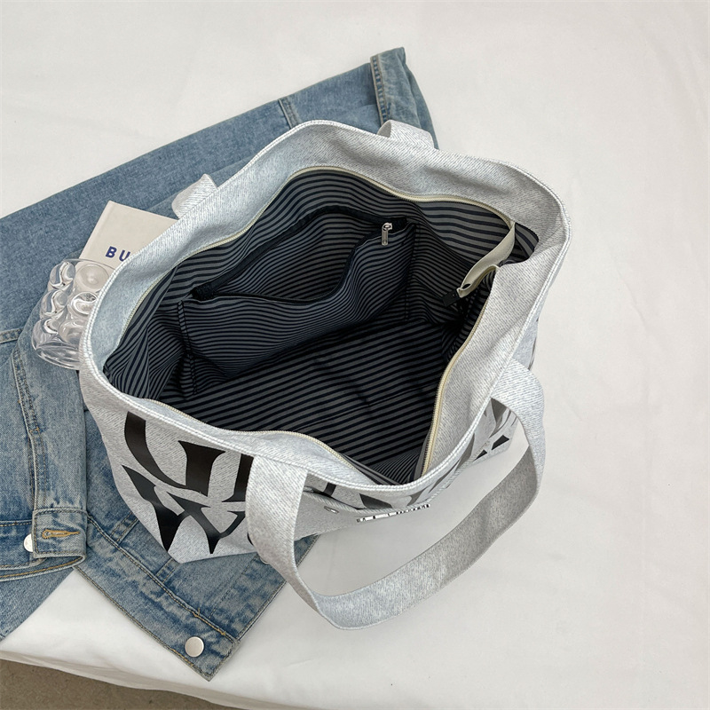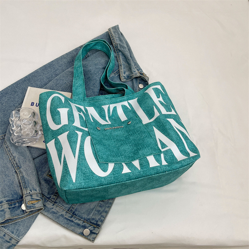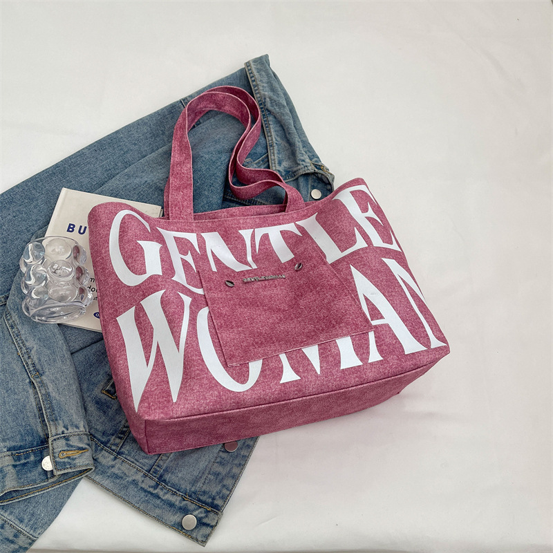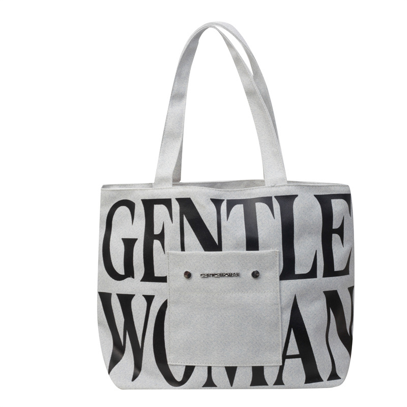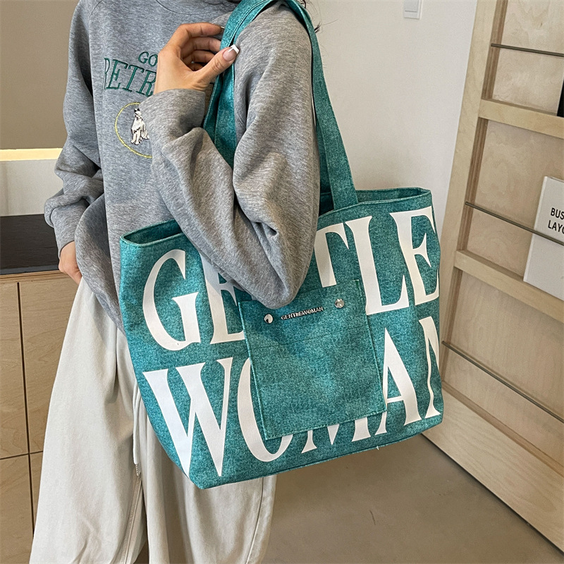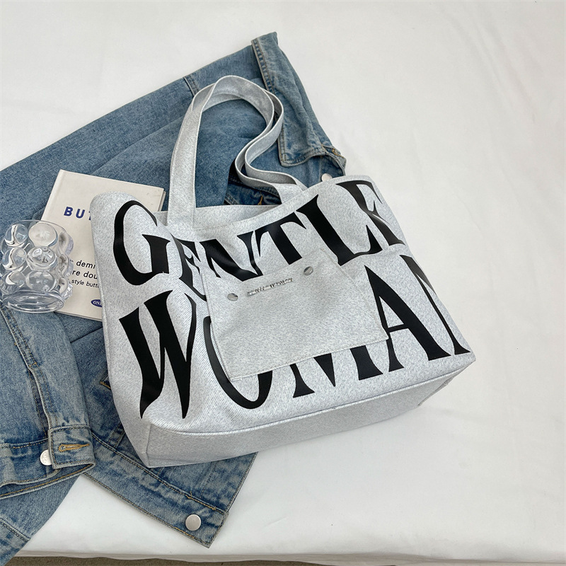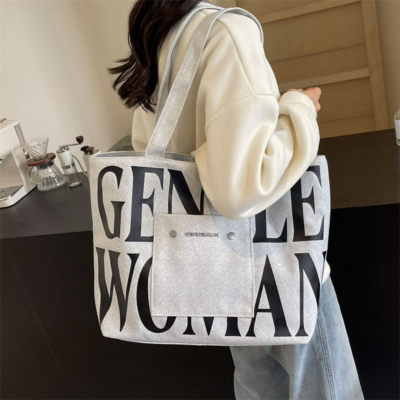 单肩包帆布文艺大容量女简约字母手提包高级感百搭学生通勤托特包