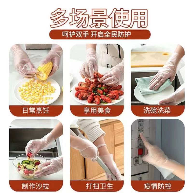 现货批发一次性手套食品级100只手套盒装小龙虾塑料手套加厚透明