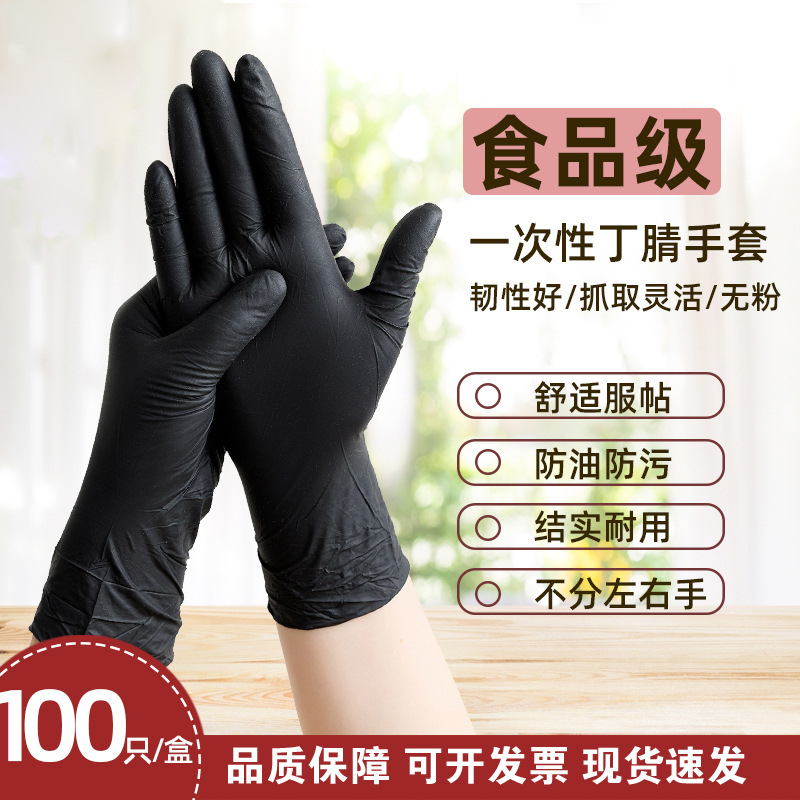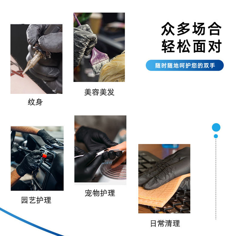 现货黑色丁晴手套加厚汽保机器维修纹绣美发洗碗黑色手套丁腈