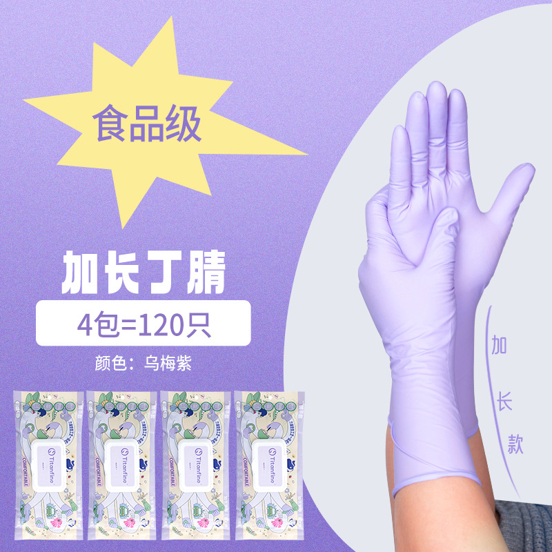 - 12英寸纯丁腈加长加厚【乌梅紫】120只装S码