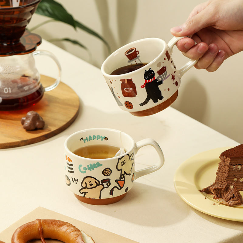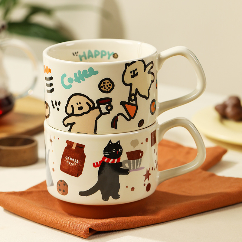 咖啡猫陶瓷叠叠杯办公室马克杯咖啡杯高颜值喝水杯子生日礼物