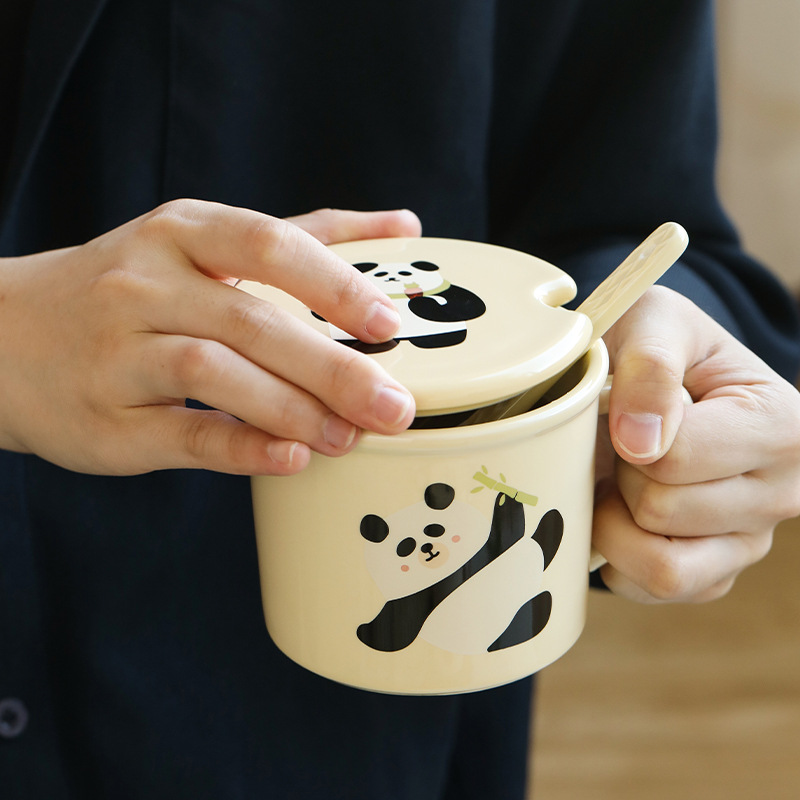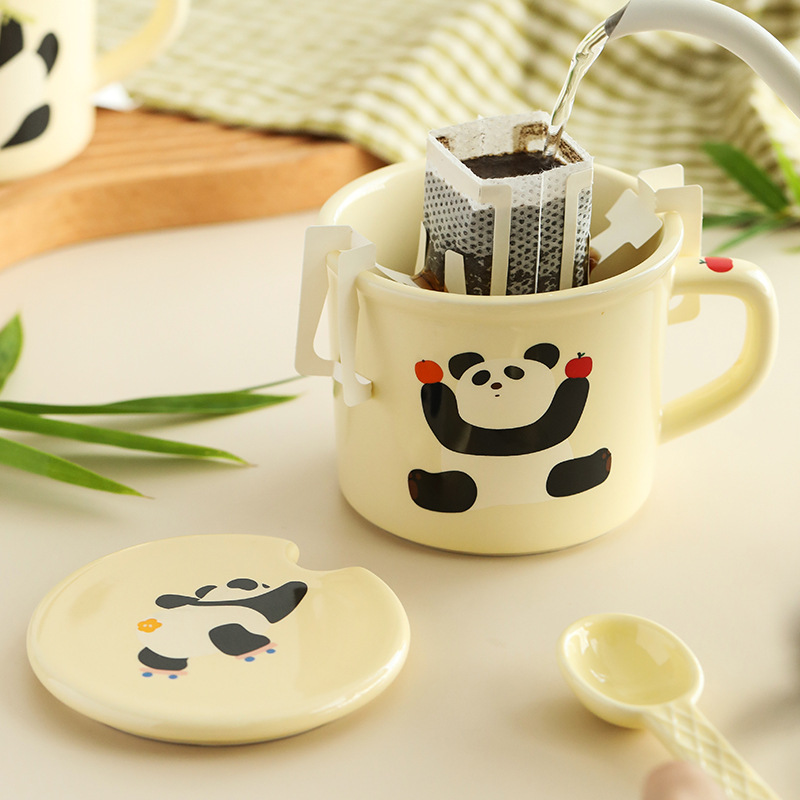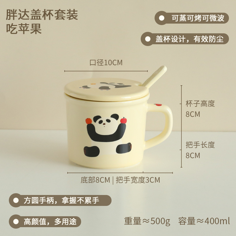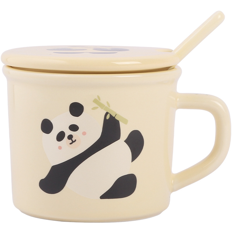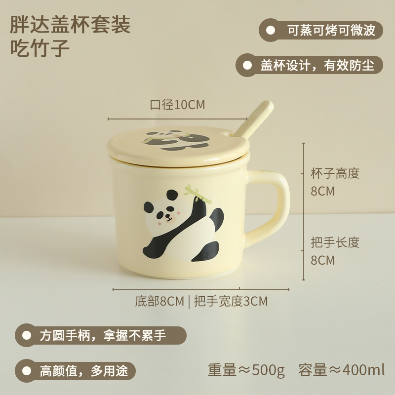 熊猫盖杯带盖带勺子陶瓷杯子高颜值茶杯可爱女生喝水杯带把