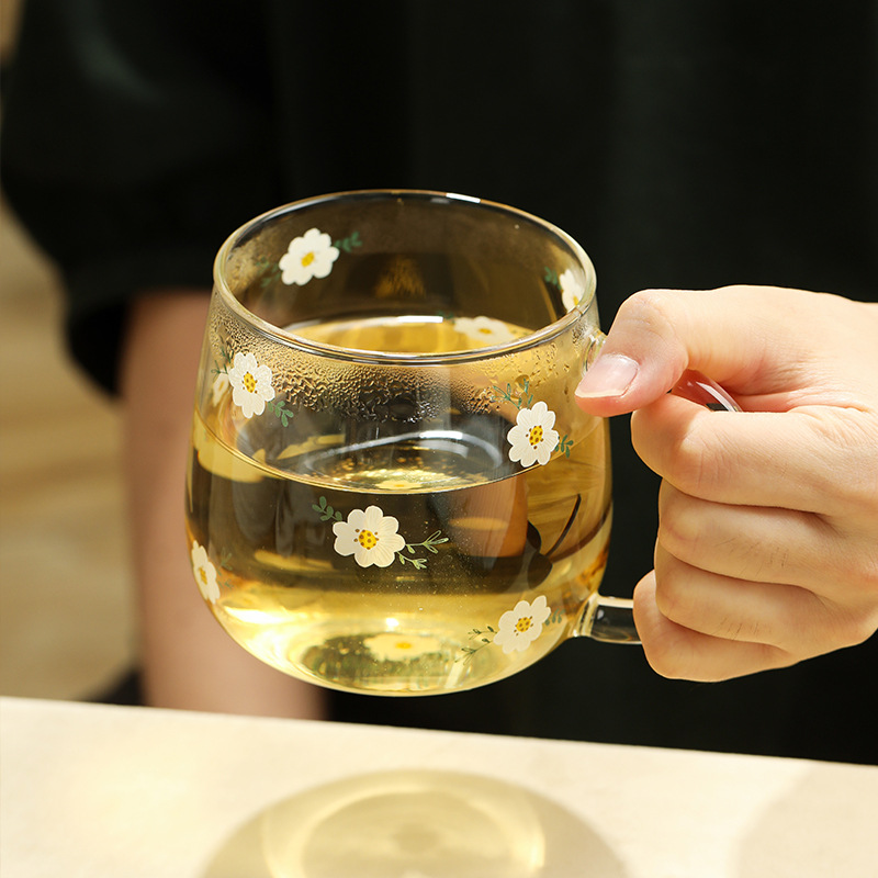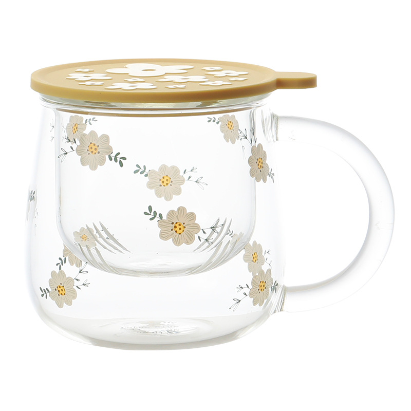 小雏菊玻璃杯茶杯茶水分离女生高颜值带盖家用带把手耐高温泡茶杯
