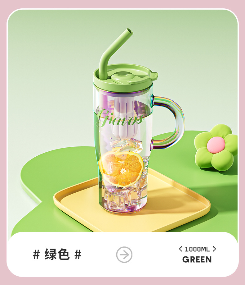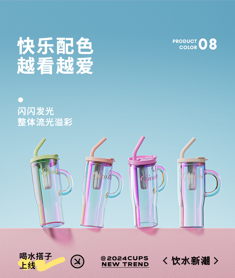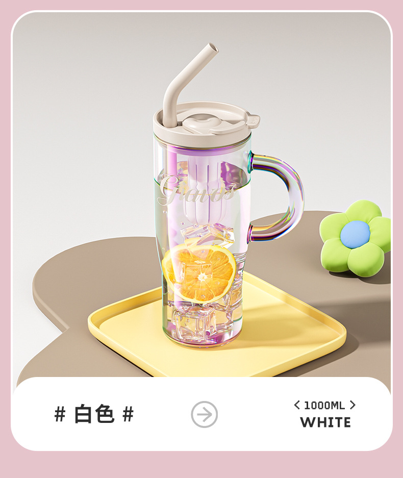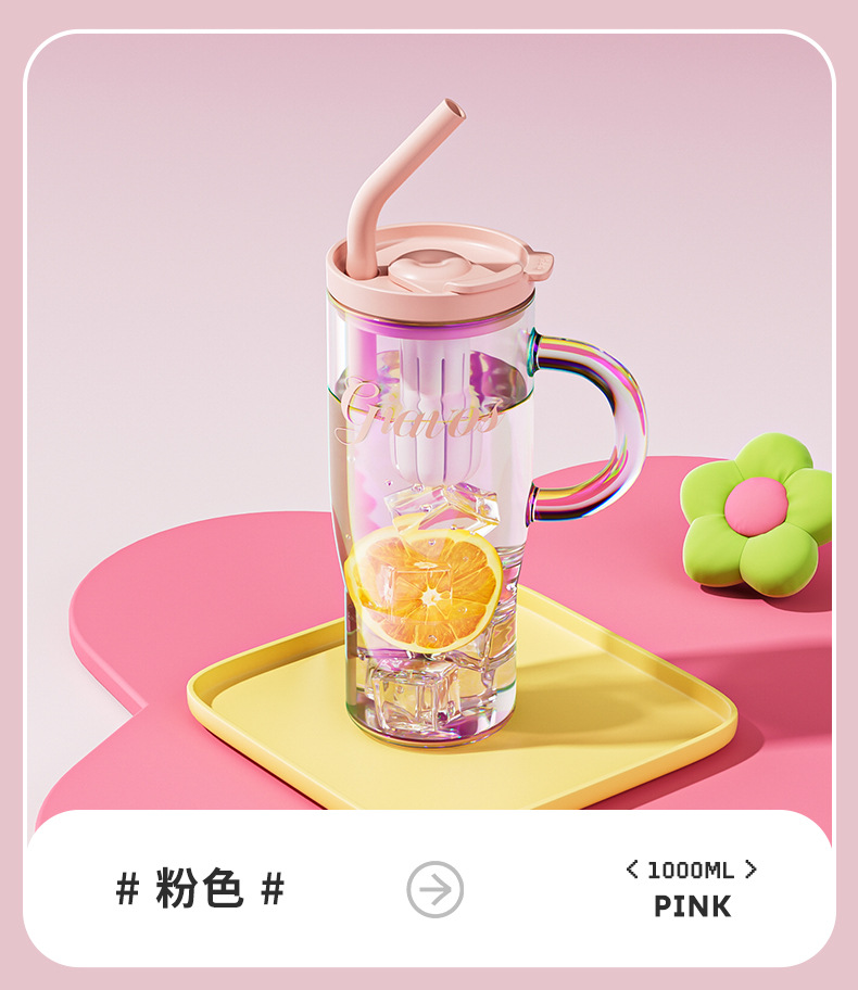 炫彩玻璃杯高硼硅大容量水杯女便携高颜值冰霸杯带吸管杯子