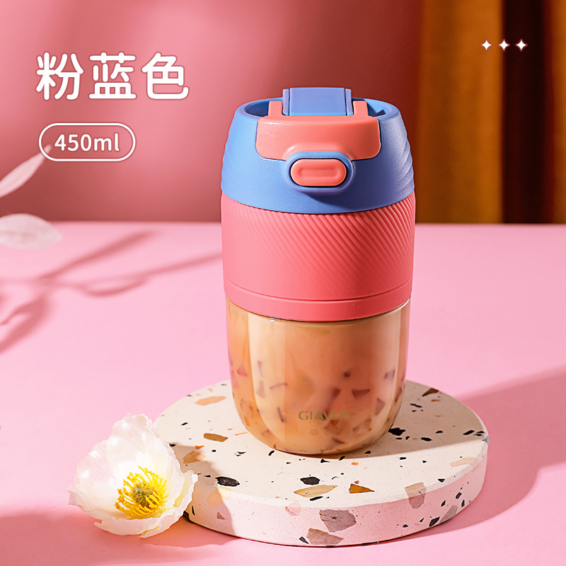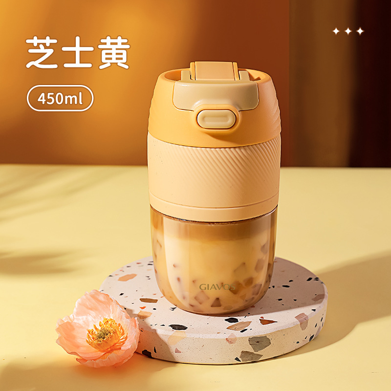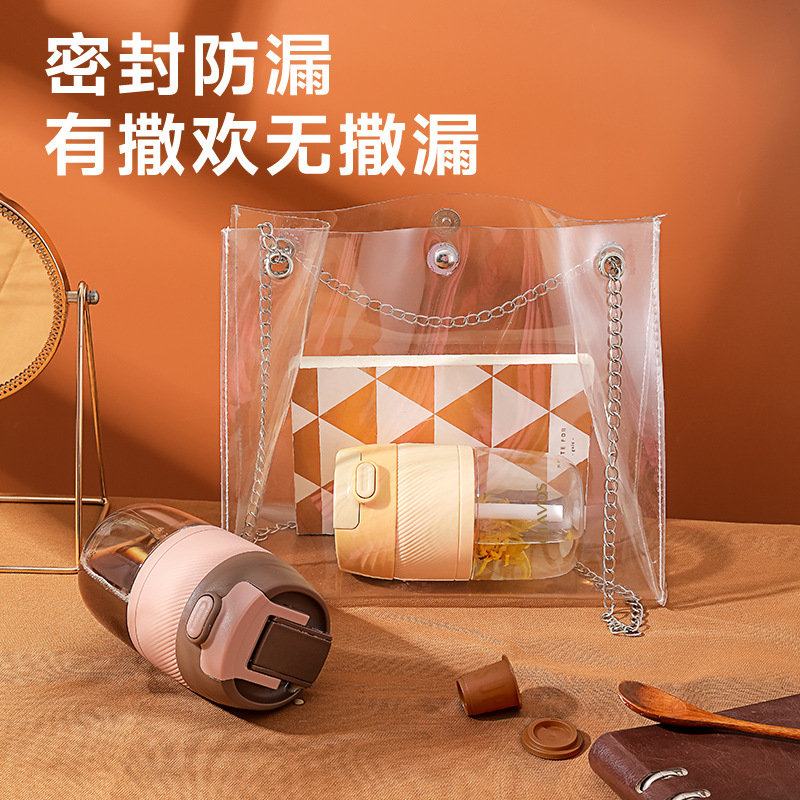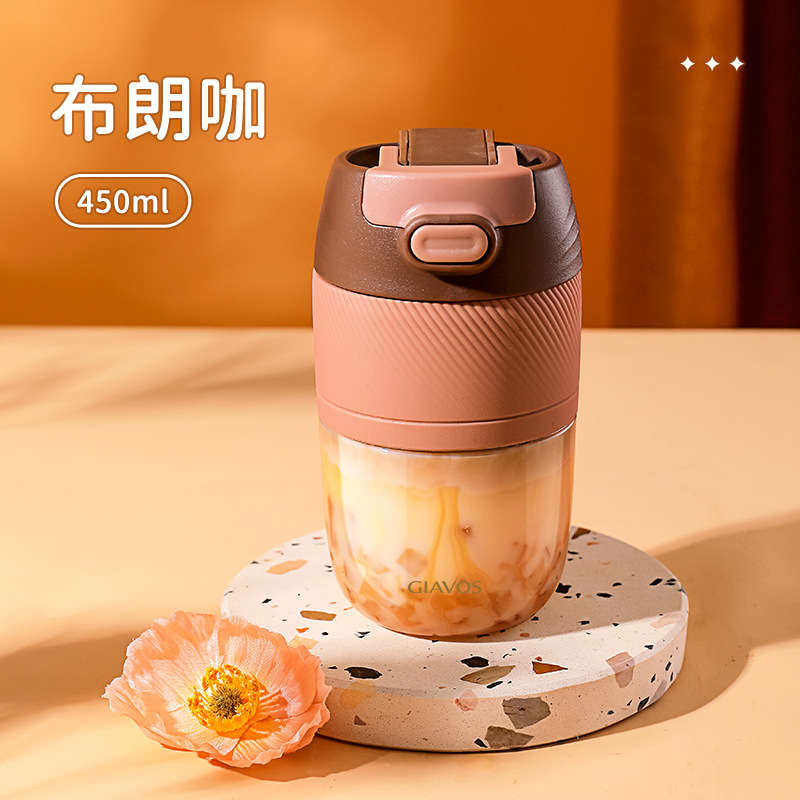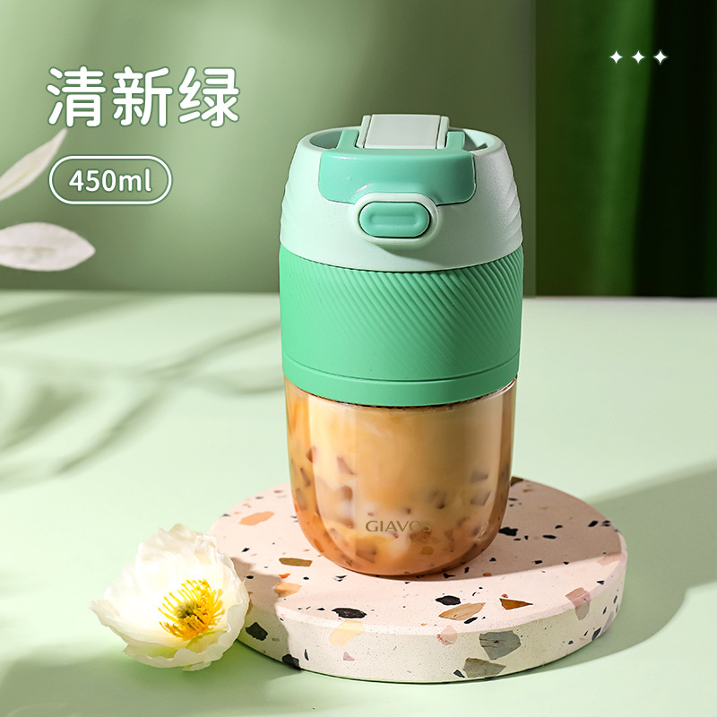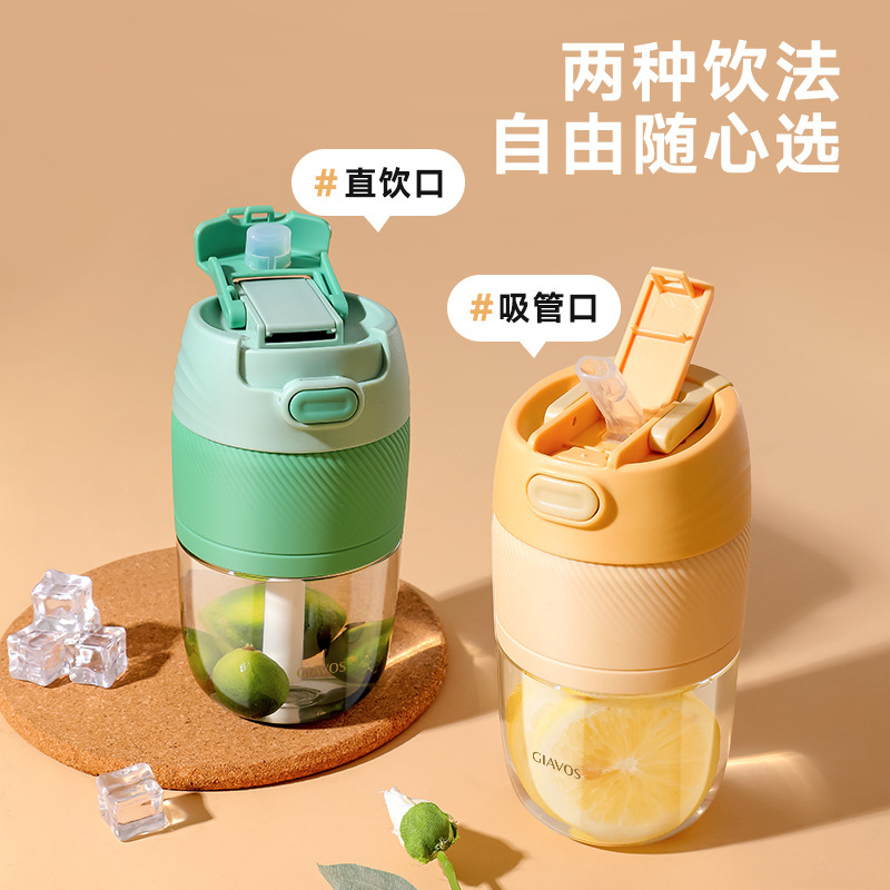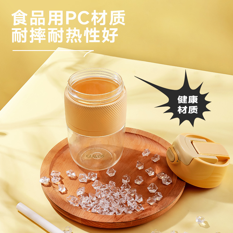 大容量塑料水杯弹跳盖便携咖啡杯女创意高颜值带吸管塑料礼品杯子
