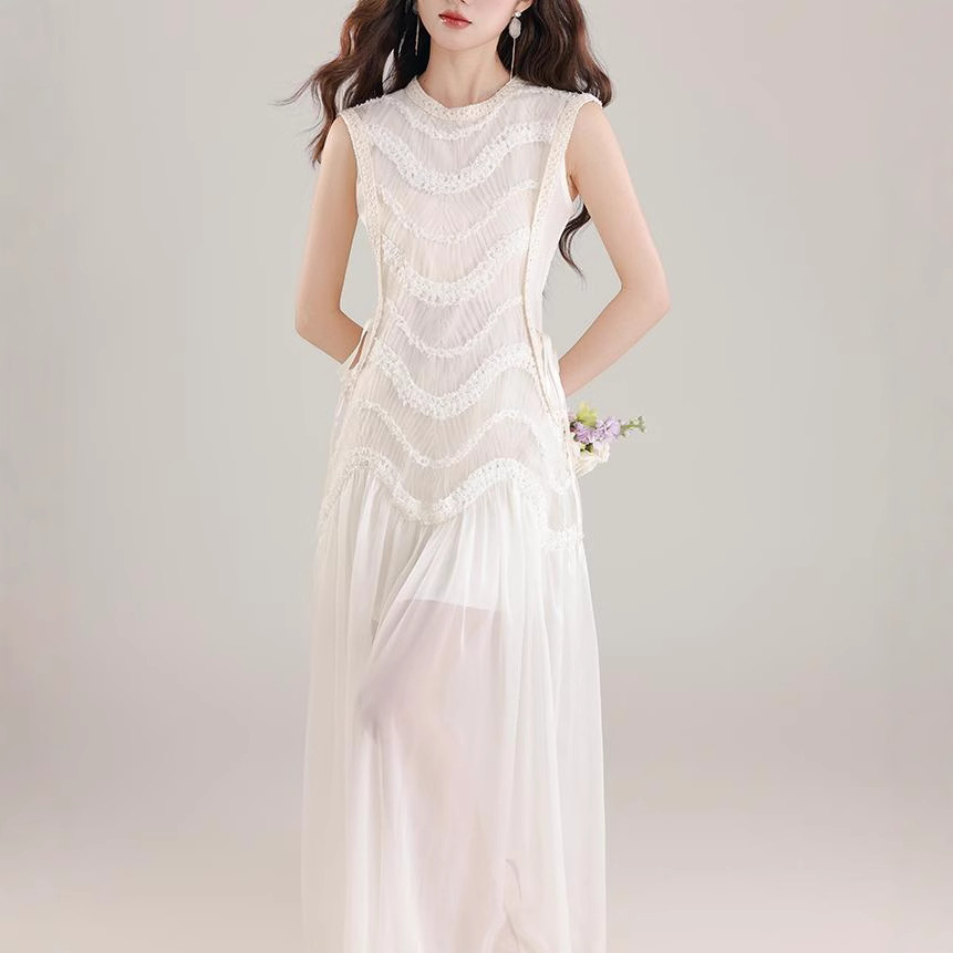 海边度假出片裙夏季度假风气质重工无袖背心连衣裙女修身收腰长裙