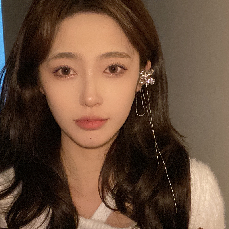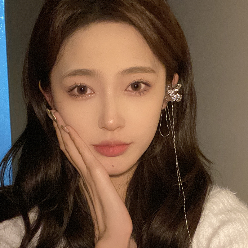 流苏耳夹无耳洞耳骨夹金属花朵耳夹耳环小众设计感高级感长款耳挂