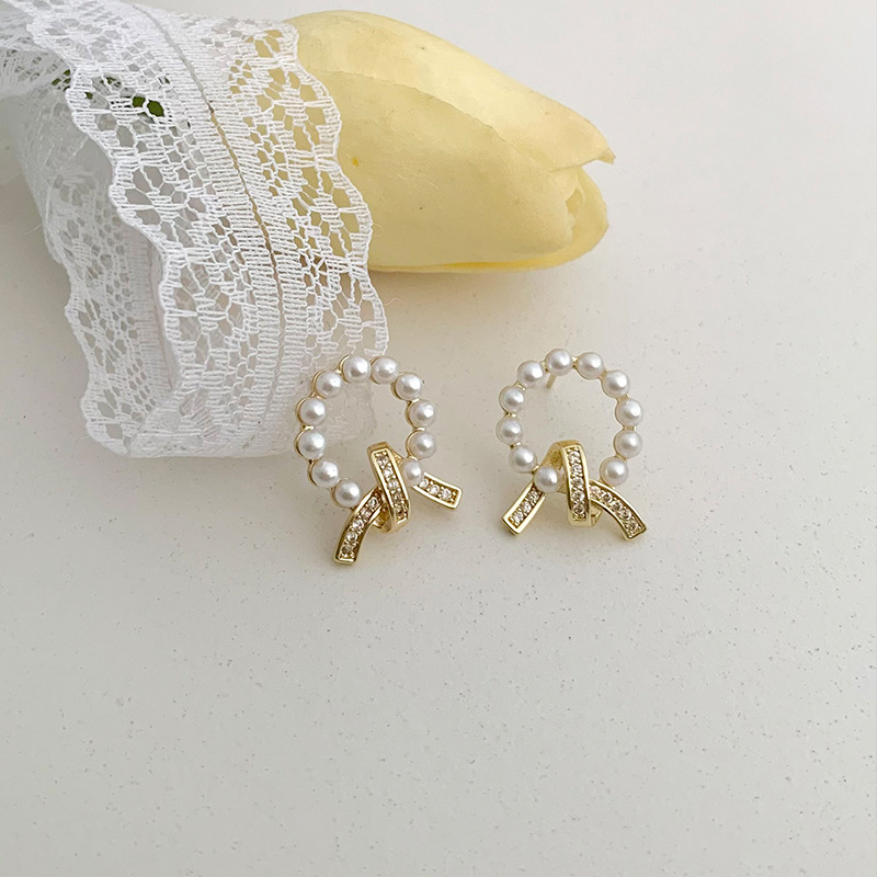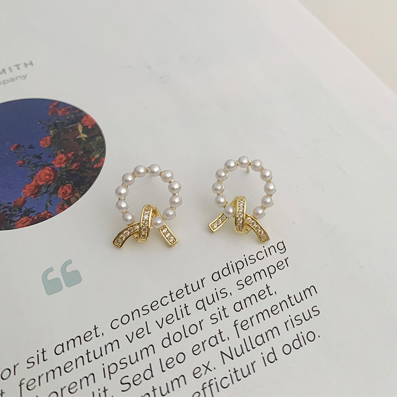 气质甜美蝴蝶结珍珠圆圈耳钉小众设计感轻奢高级耳环网红百搭耳饰