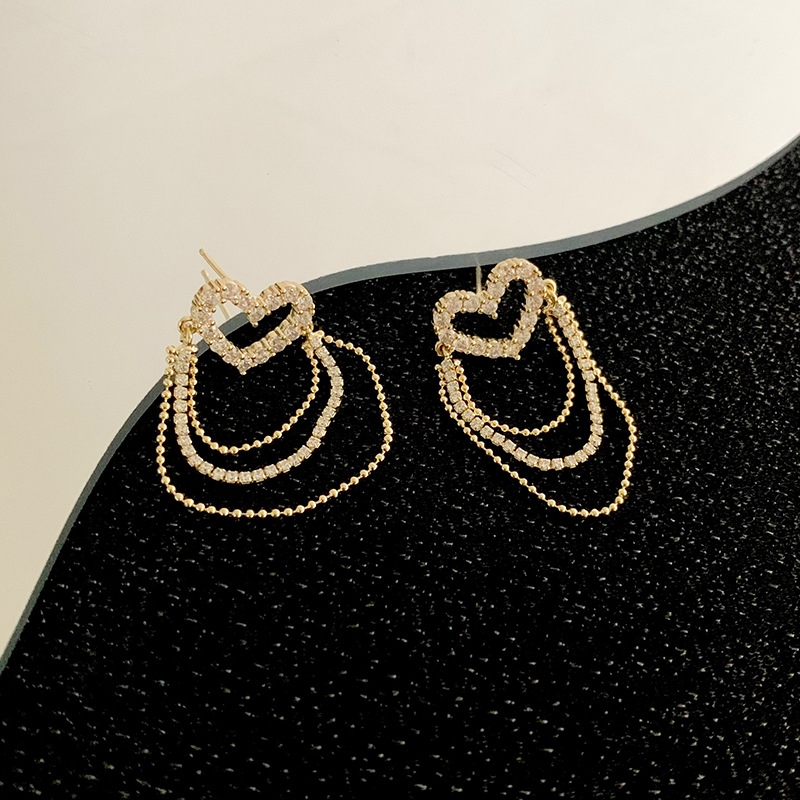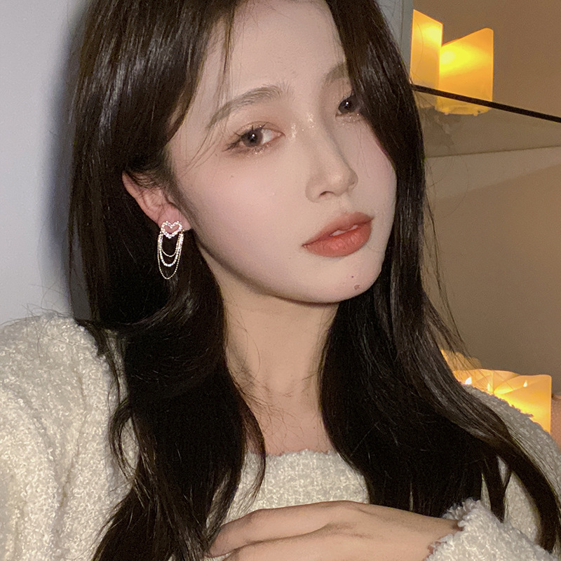 独特设计甜美爱心流苏耳钉耳环女轻奢小众高级感气质网红百搭耳饰