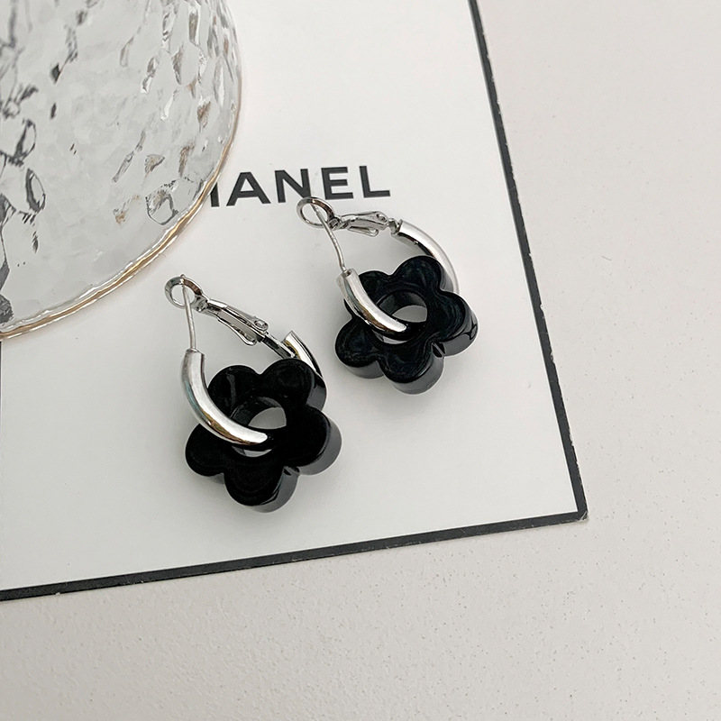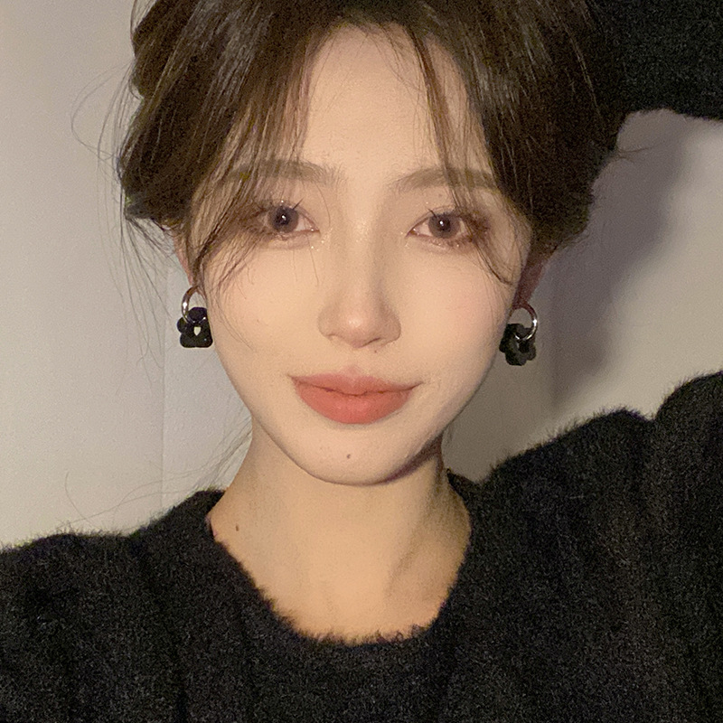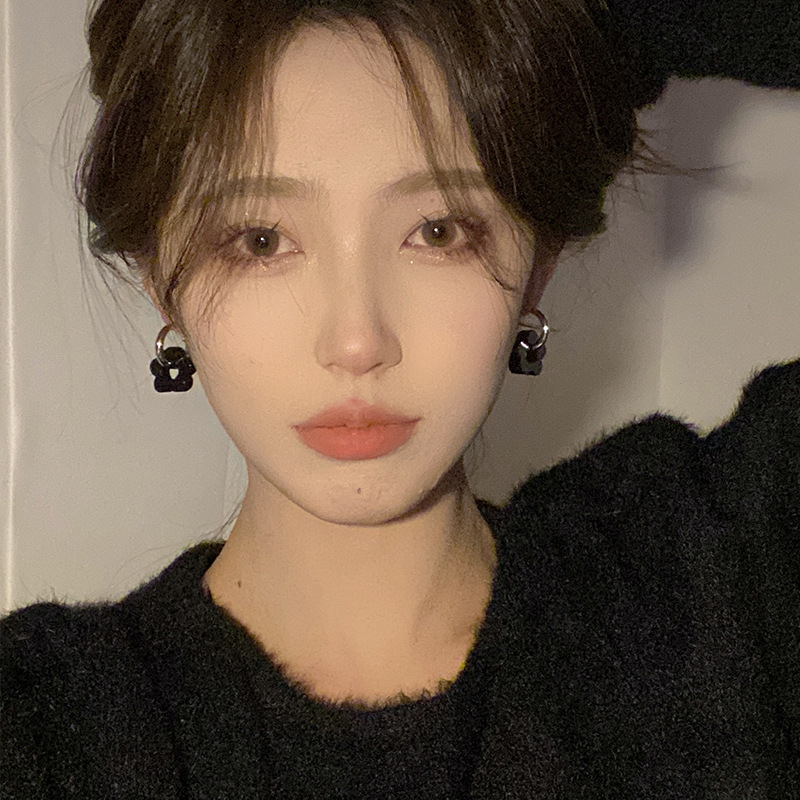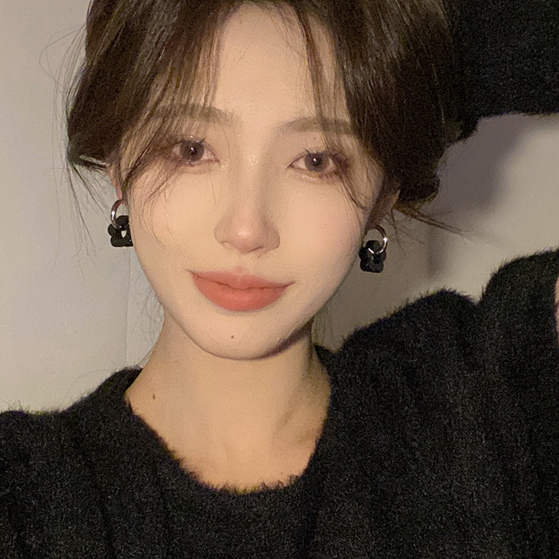 个性气质黑色花朵耳钉时尚百搭小众设计高级感耳饰简约冷淡风耳环