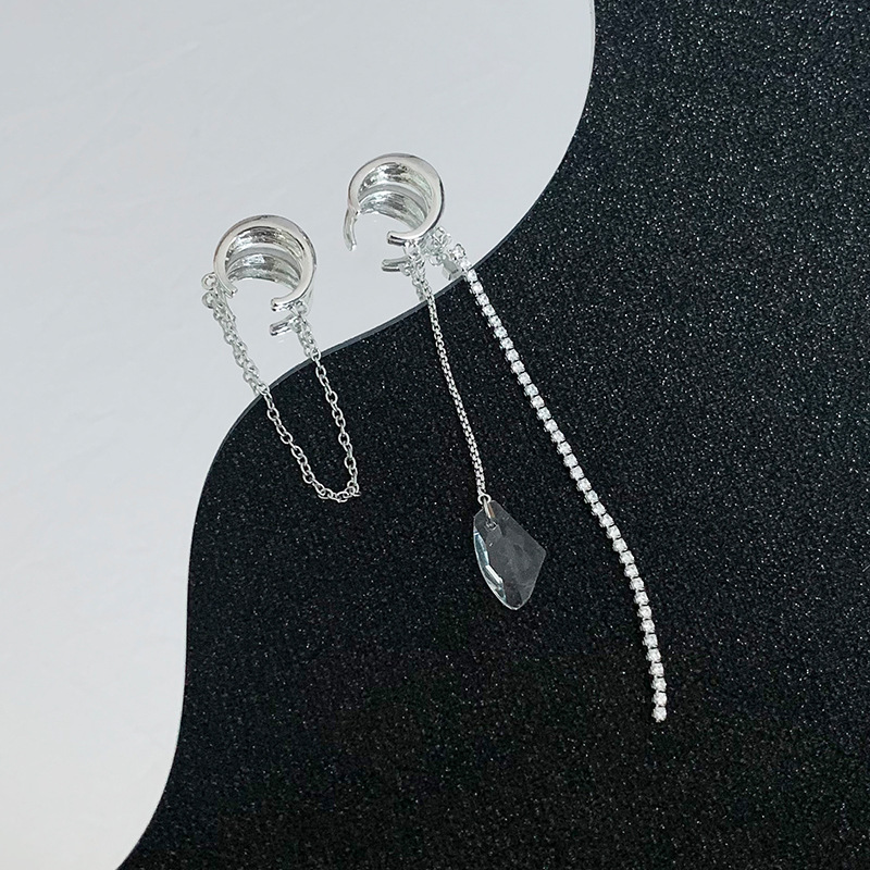 个性冷淡风小众高级感耳夹长款显脸瘦水晶流苏无耳洞耳骨夹耳饰品