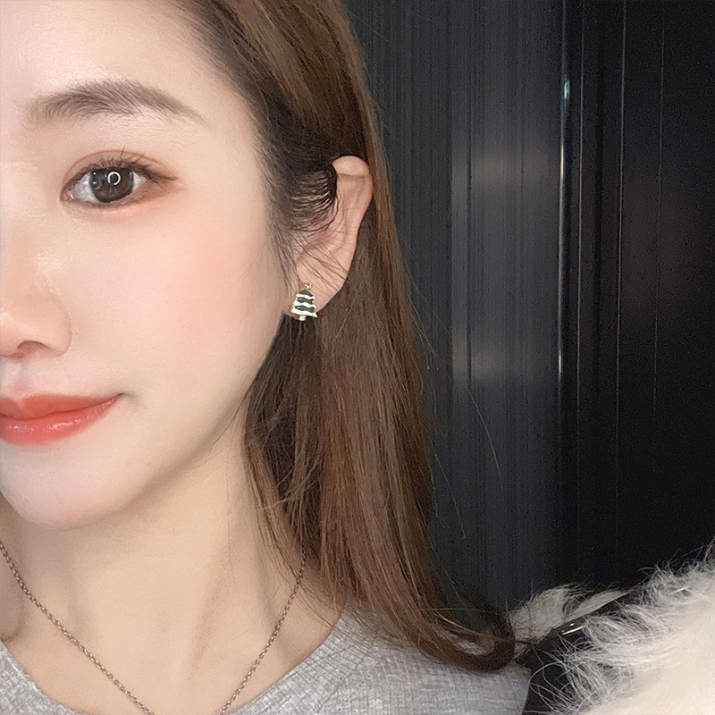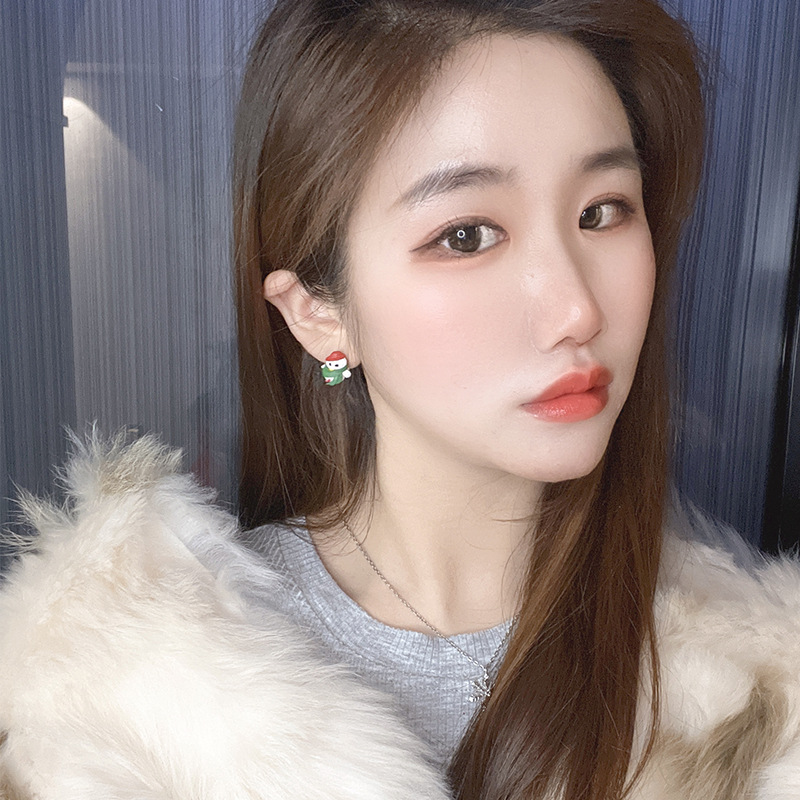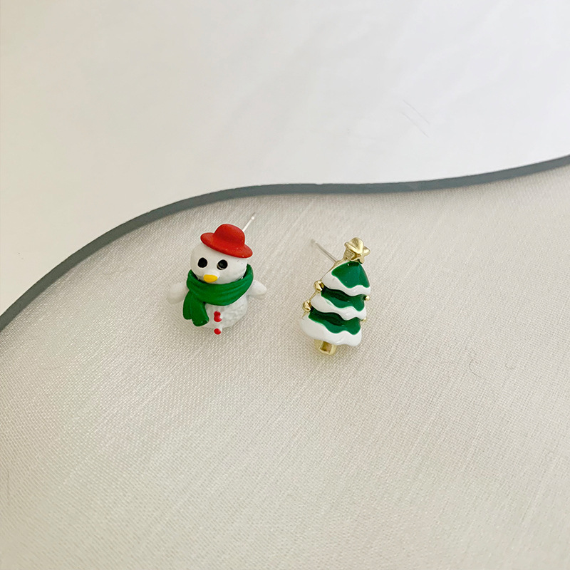 小雪人松树耳钉甜美可爱耳环个性少女圣诞树百搭树脂耳坠耳饰