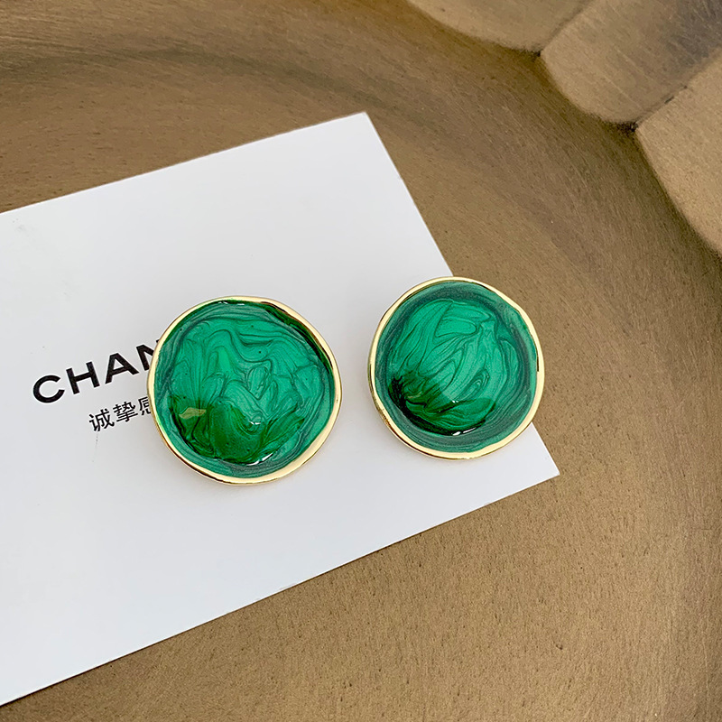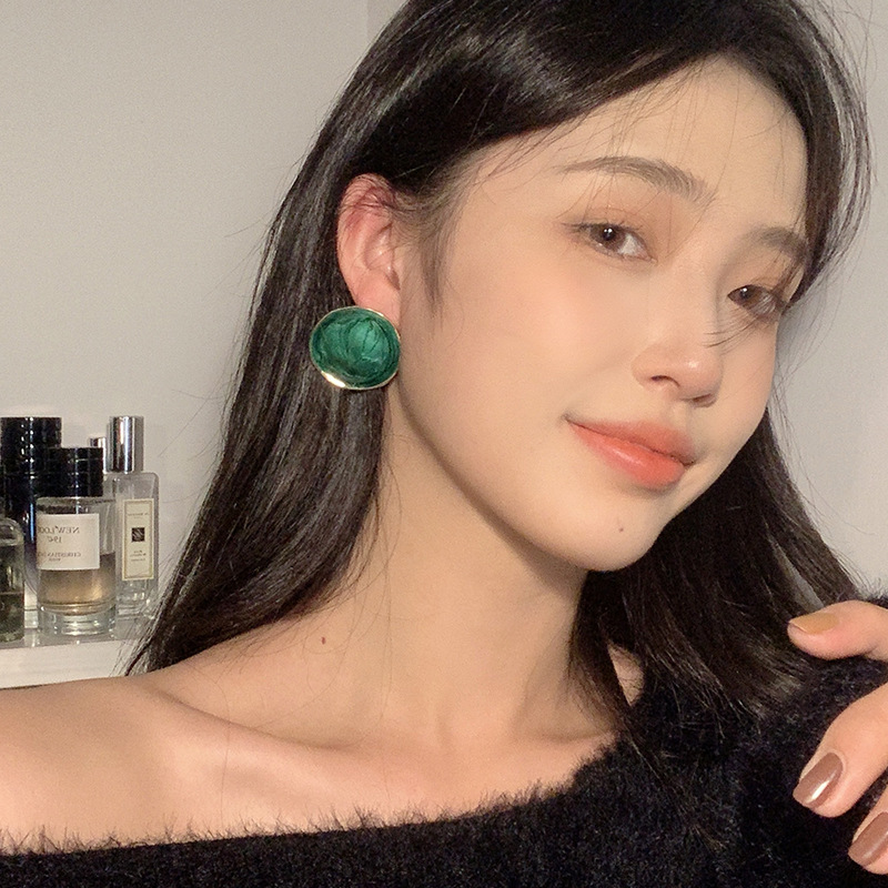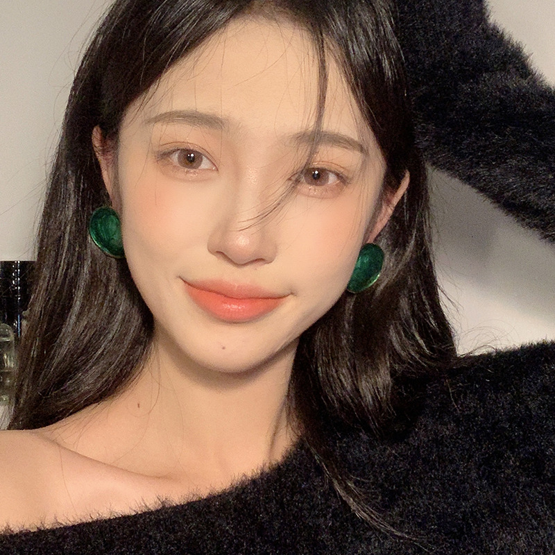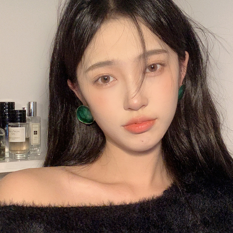 轻奢小众设计感高级绿色耳环个性时尚大圆形耳钉秋冬复古耳饰女潮