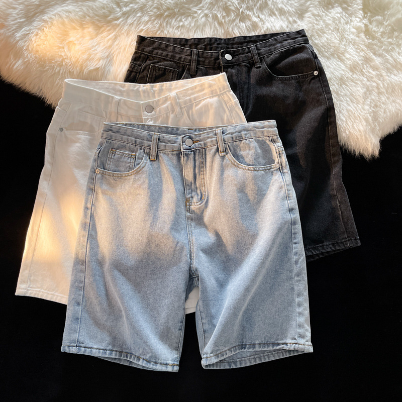 纯色牛仔短裤男ins原宿风宽松休闲五分裤夏季潮牌百搭直筒大裤衩