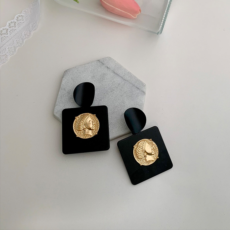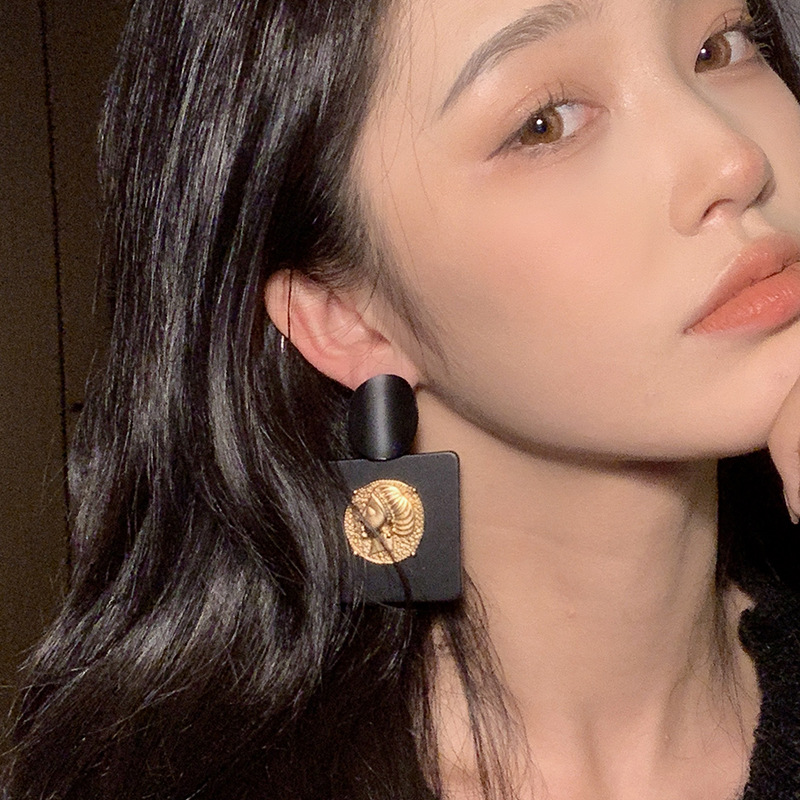 复古人像黑色耳环女新款潮小众夸张耳饰独特设计感气质耳坠
