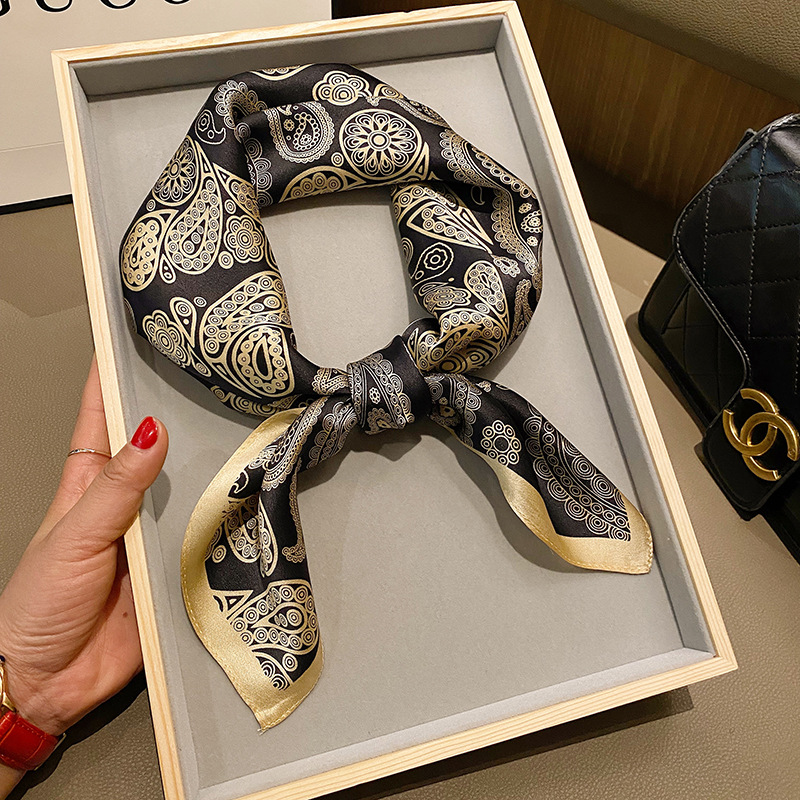 知性复古花卉方巾女真丝丝巾100%桑蚕丝鎏金腰果花领巾女