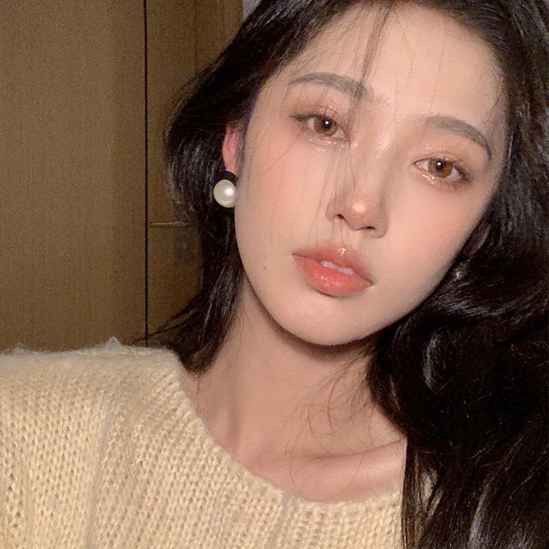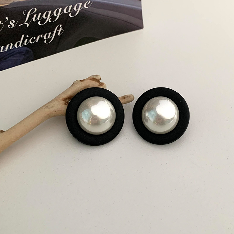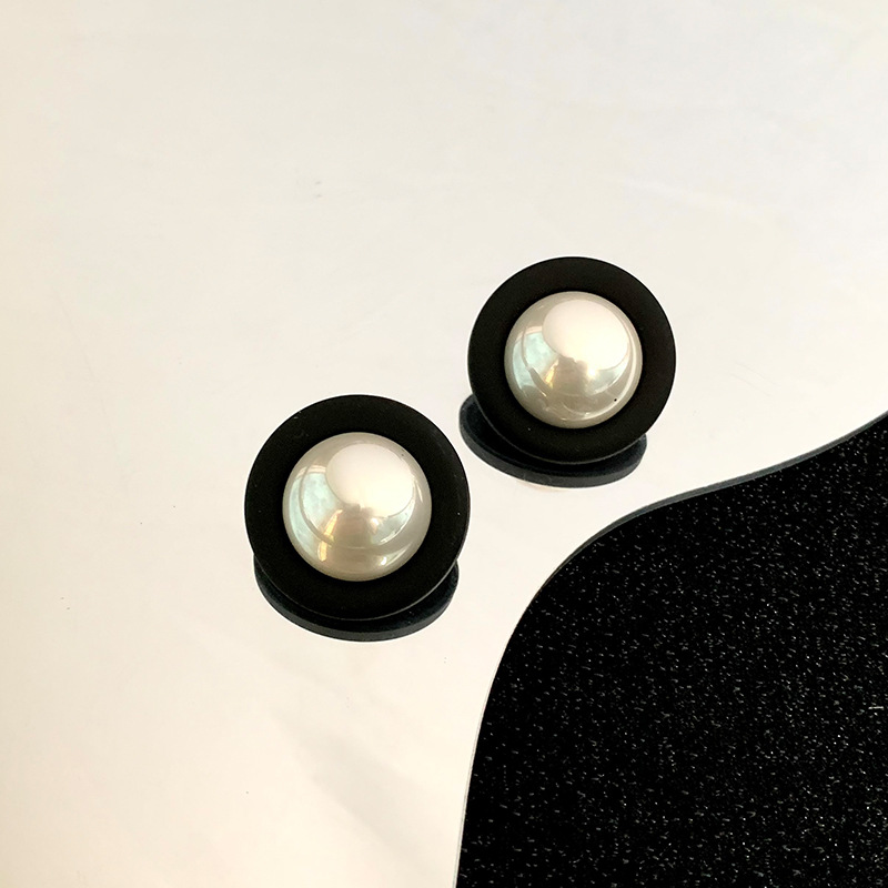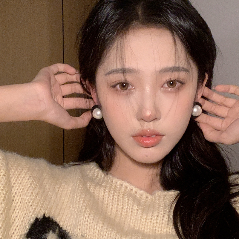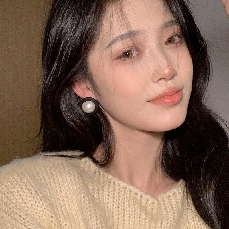 港风复古黑色珍珠耳钉法式几何高级感小众设计感个性百搭耳环耳坠