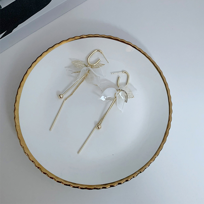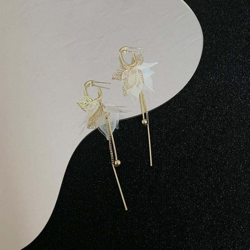 长款显脸瘦花朵叶子流苏耳坠轻奢小众气质耳环网红百搭耳钉耳饰品