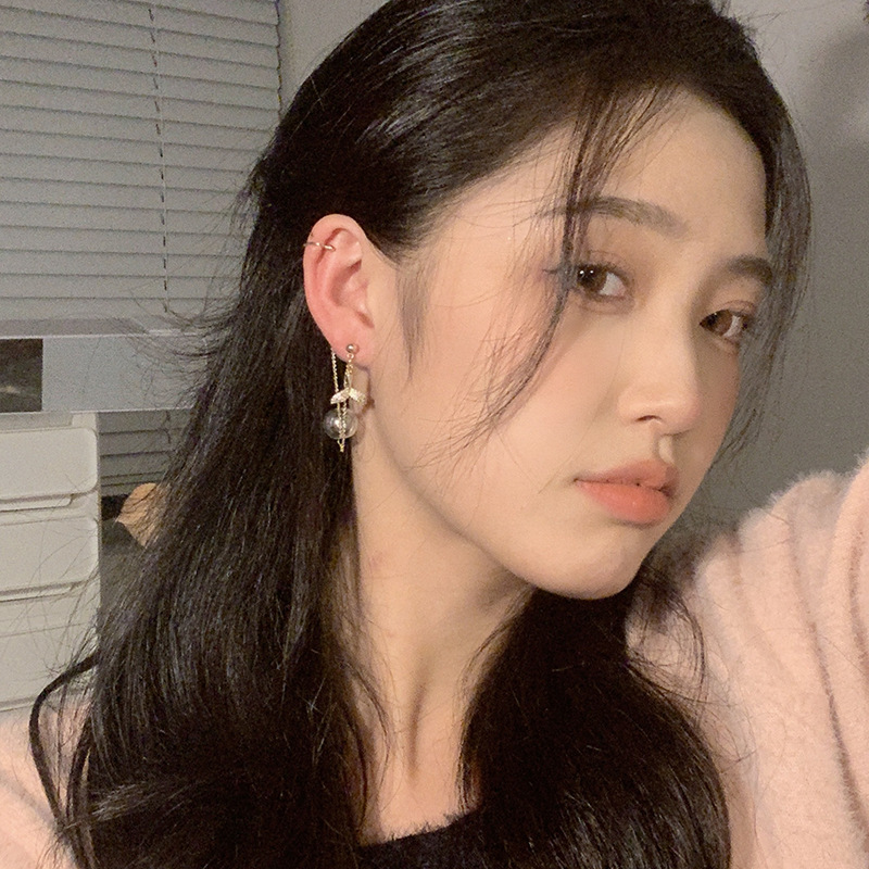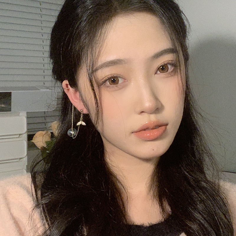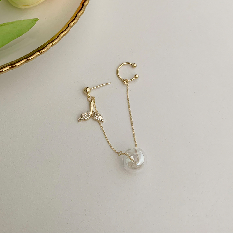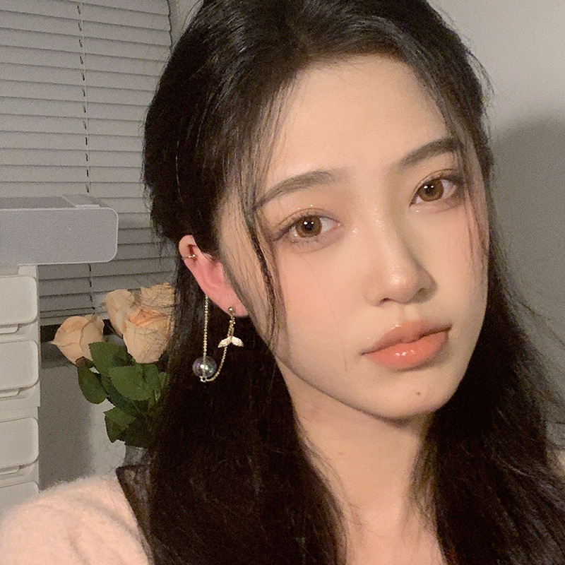 气质鱼尾镶钻锆石流苏耳环链条耳钉耳骨夹一体式日式轻奢小众耳饰