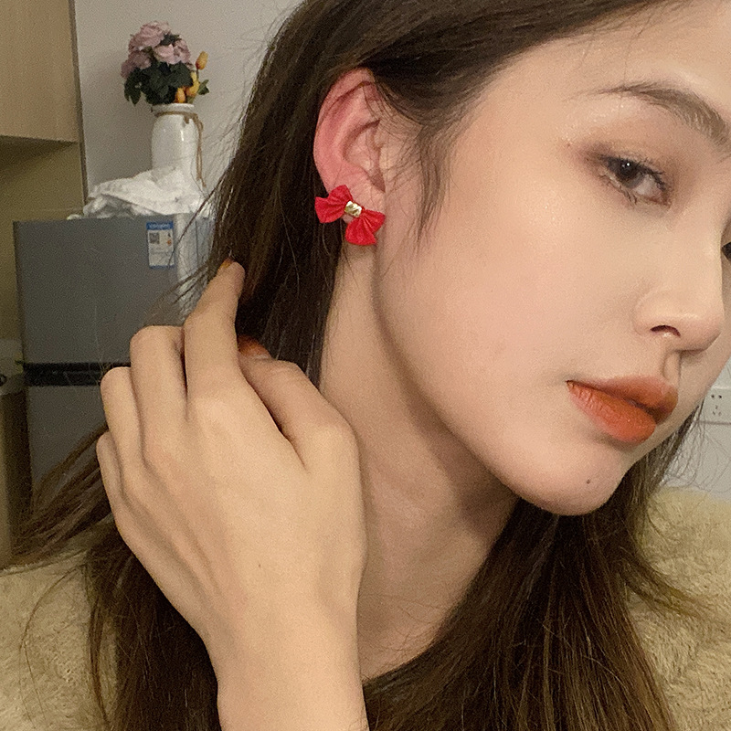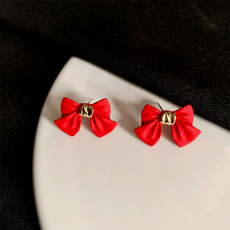 在逃公主红色蝴蝶结耳环 ins日韩精致小巧耳钉可爱甜美气质耳饰品
