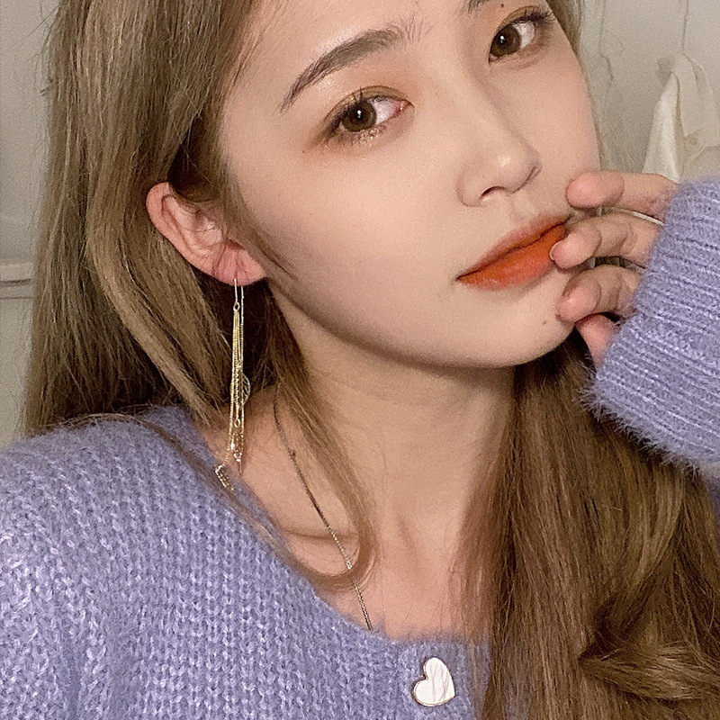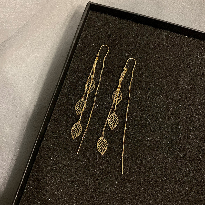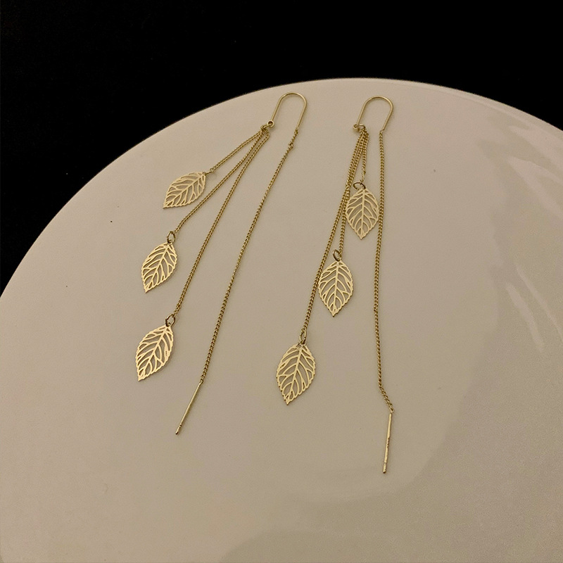韩国气质长款金色树叶流苏耳环新款潮网红个性设计感耳饰品