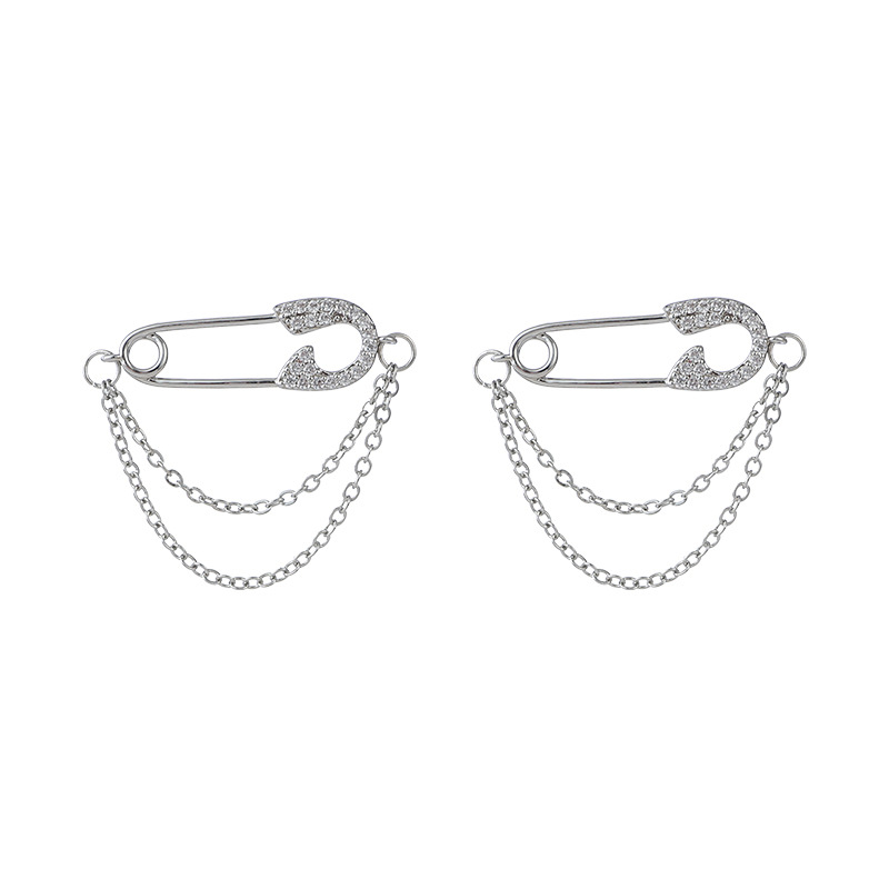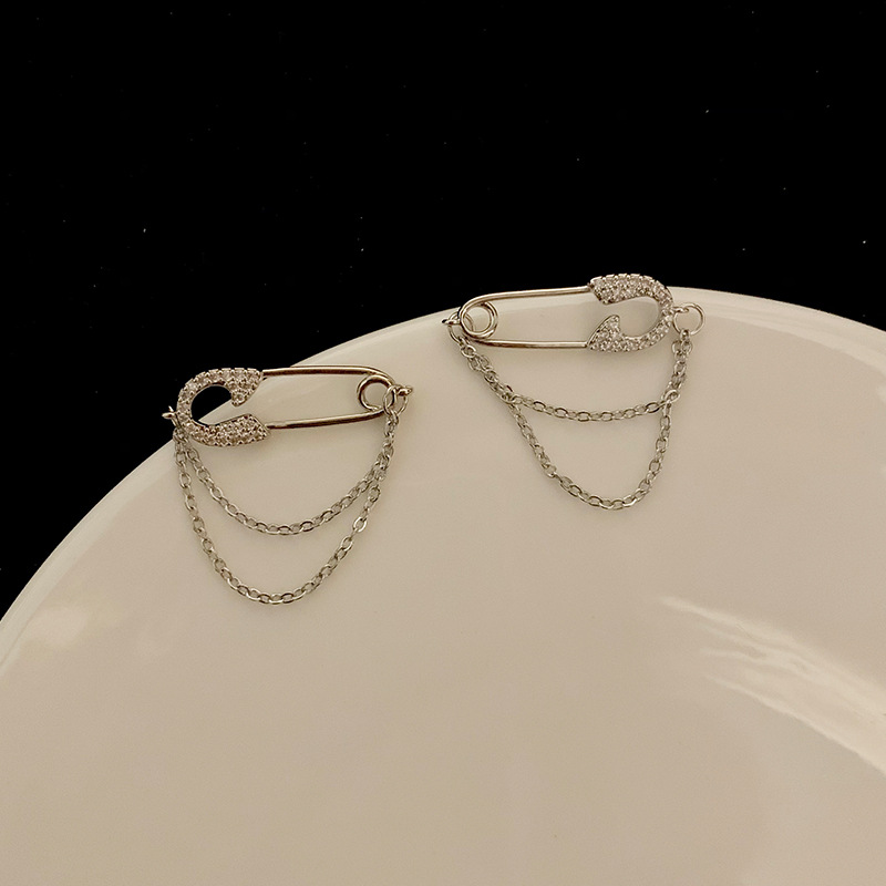 个性创意金属镶钻回形针链条流苏耳环 ins冷淡风网红百搭耳钉耳饰