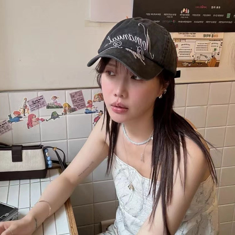 韩国小众街头潮牌水洗做旧刺绣字母鸭舌帽女情侣软顶大头围棒球帽