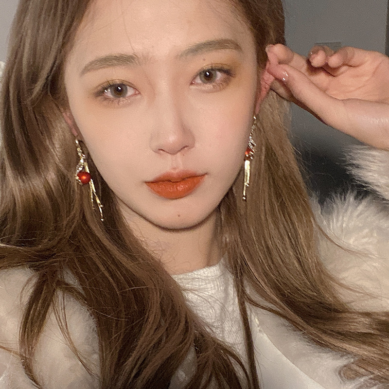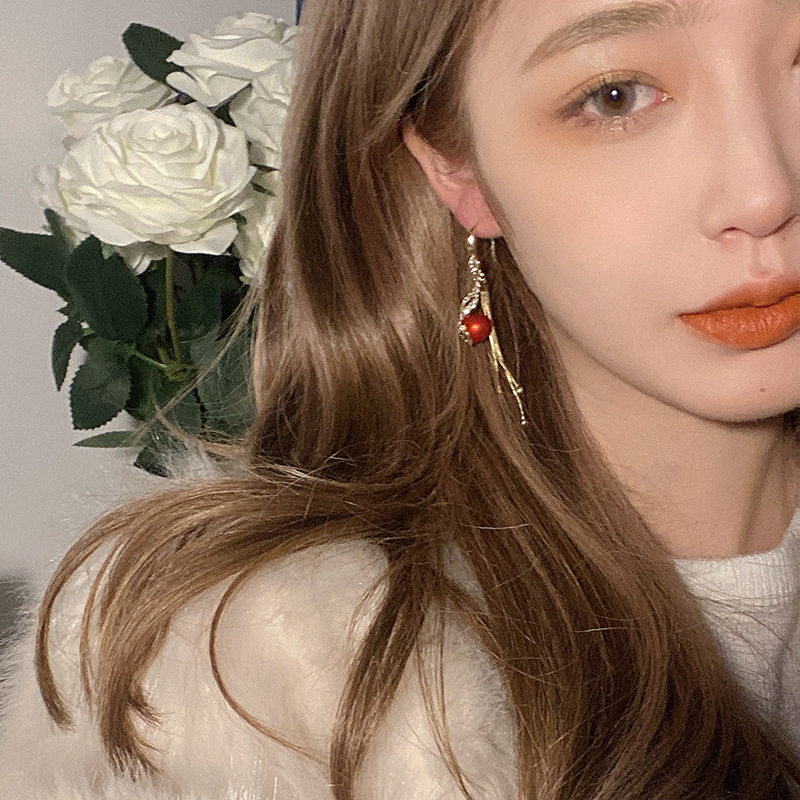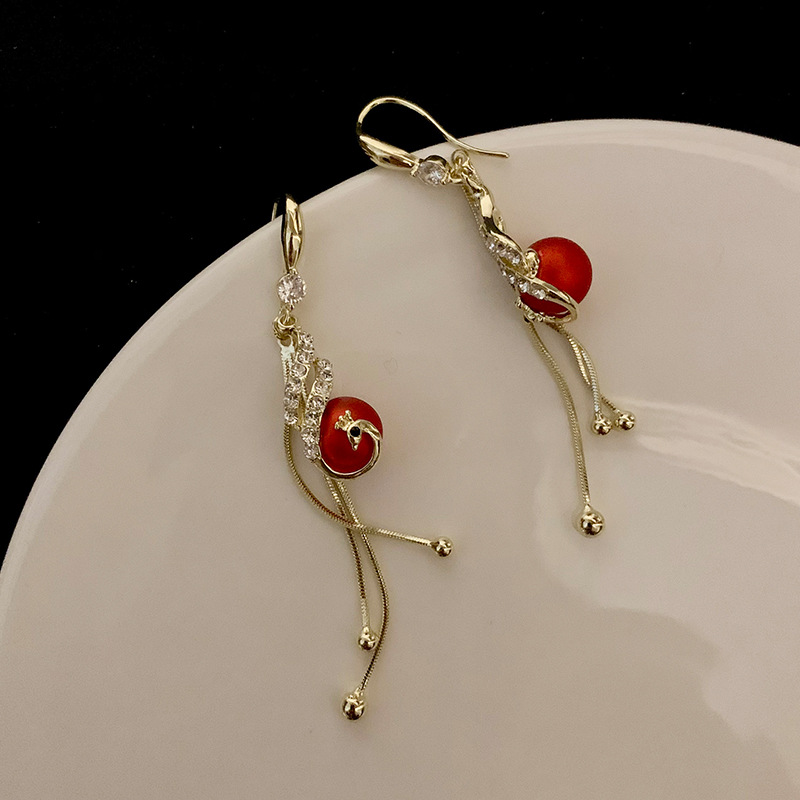 新年红色孔雀镶钻流苏耳环新款气质网红长款显脸瘦耳饰耳坠