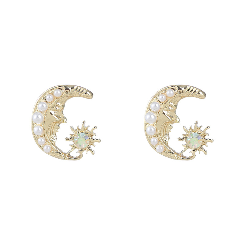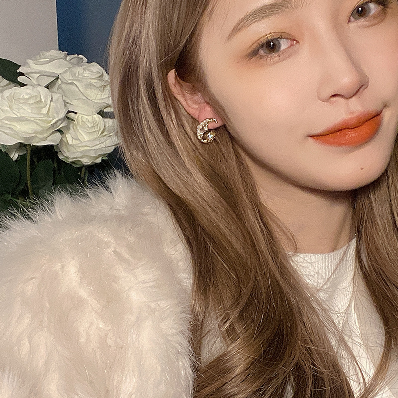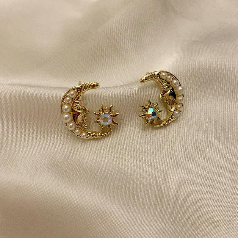 法式复古优雅月亮珍珠耳环女新款潮网红甜美耳钉高级感耳饰品
