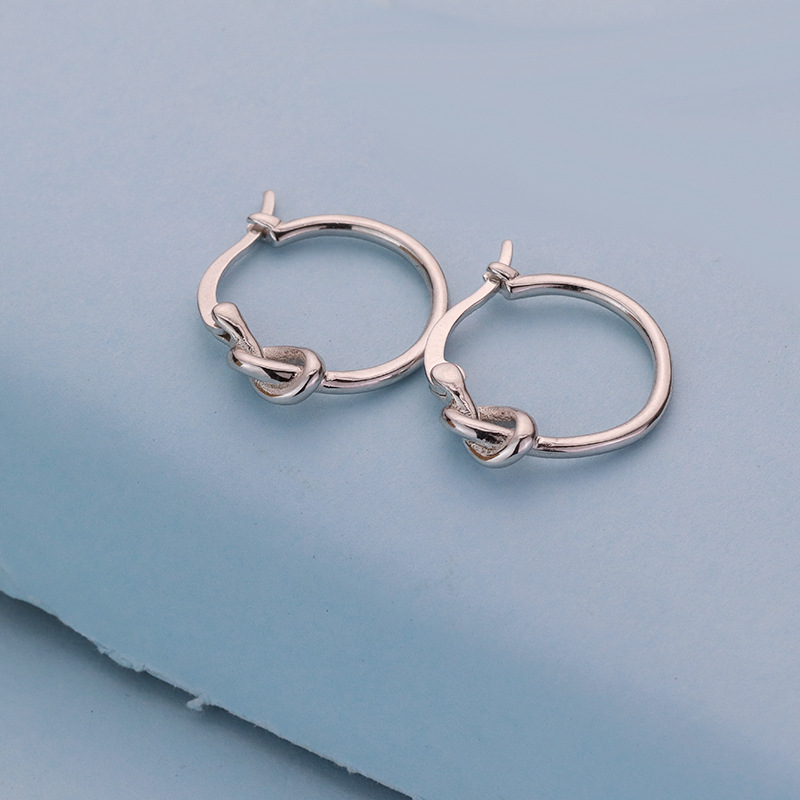 S999纯银冷淡风法式手工打结耳环女 韩版同心结耳勾个性百搭耳钉