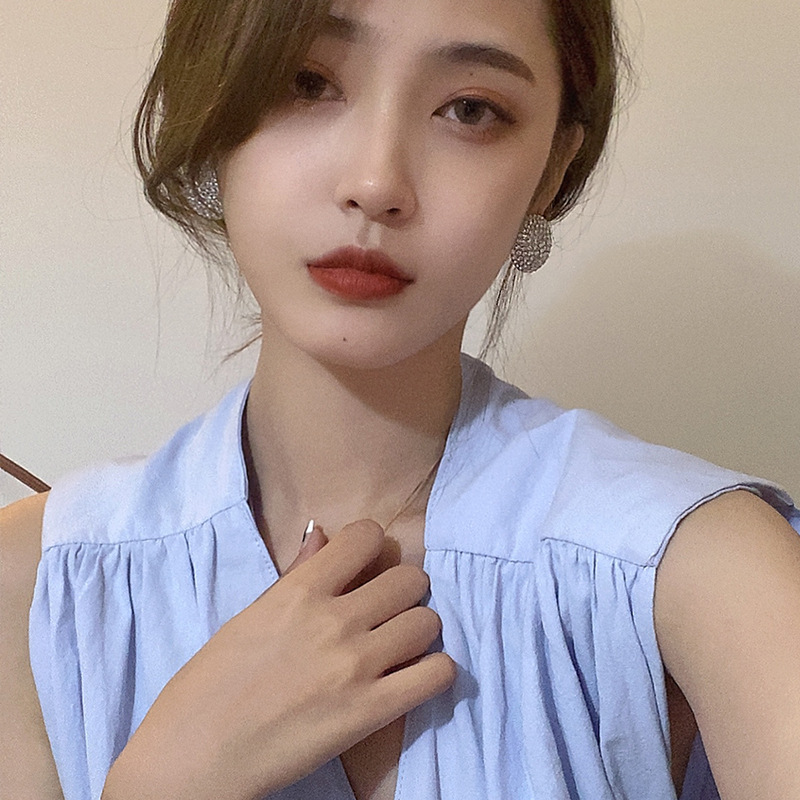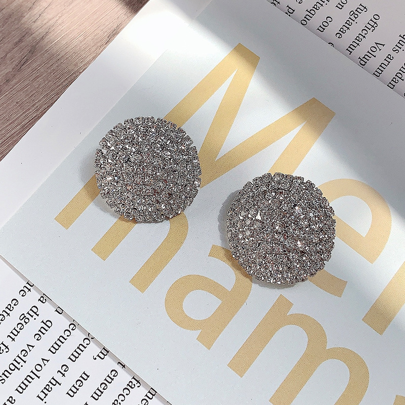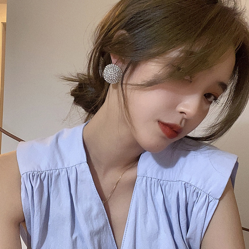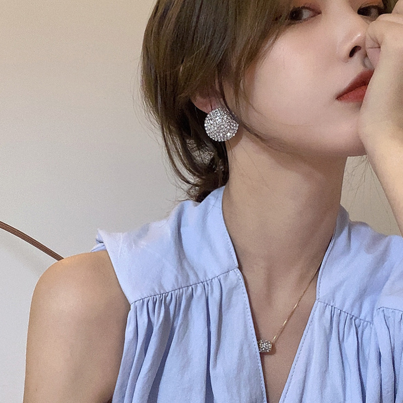 新款超闪满钻锆石耳钉简约冷淡风网红气质大圆形耳环时尚百搭耳饰
